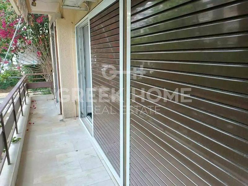 Piraeus, Neo Faliro - Apartment 85sqm unfurnished, bedrooms 2, 1st, renovated, year built 1980, energy class D, living room, hall, kitchen, bathroom, heating type: central (oil), quiet, luminous, unobstructed view view, frontage, painted, balconies, tents, elevator, loft storage, garden, aluminum frames, wood & marble floors, separate kitchen, pets allowed, price is negotiable, investment property, special offer, close to market (up to 100m).