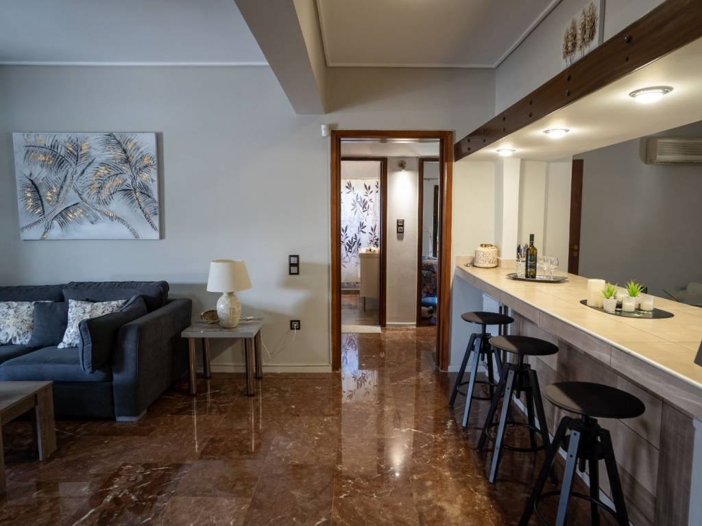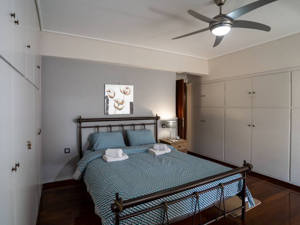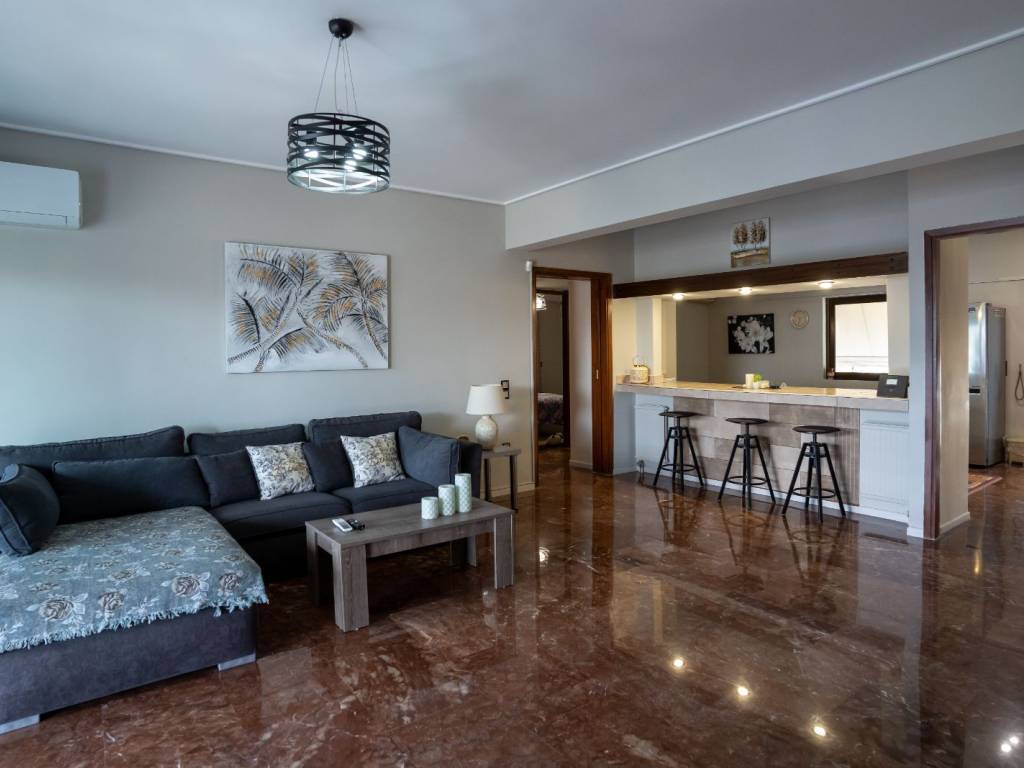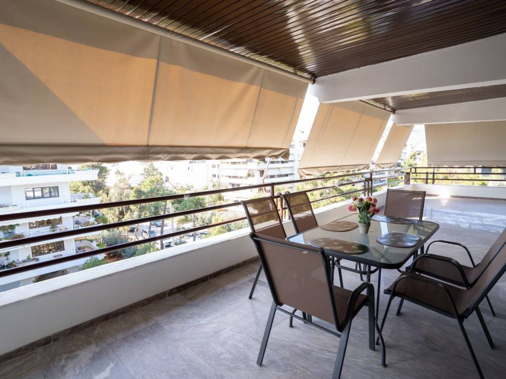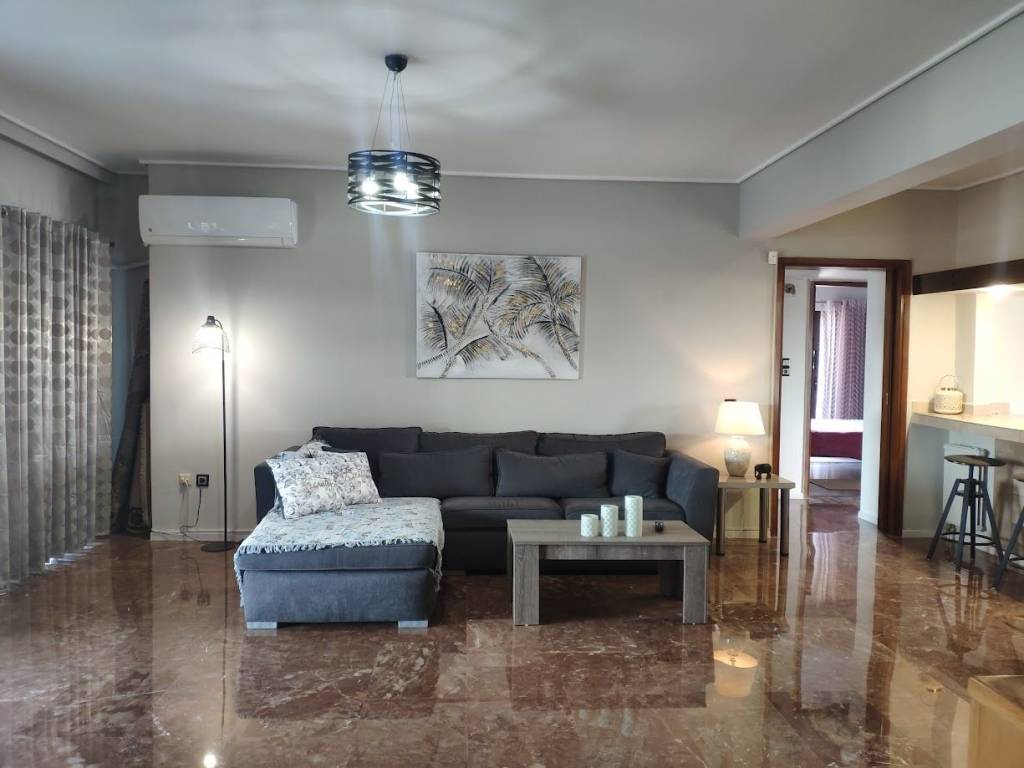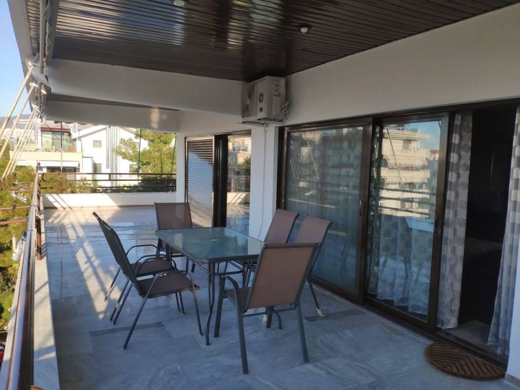 4th floor apartment, 126 sq m, Glyfada downtown. Renovated and fully furnished. It has 2 bedrooms, 2 living rooms, 2 wc, fully equipped kitchen, large balcony, 4 a/c, solar water heater, wifi, smart tv 50", dishwasher, washing machine. All bills are included in the price. Available from April to August 20.