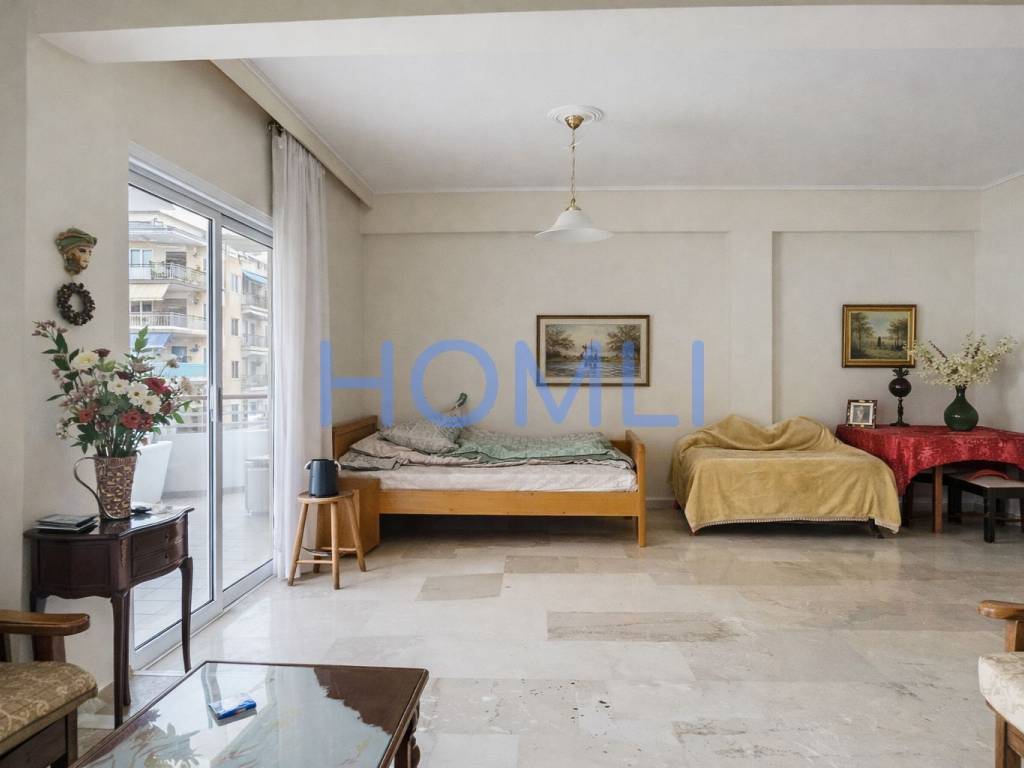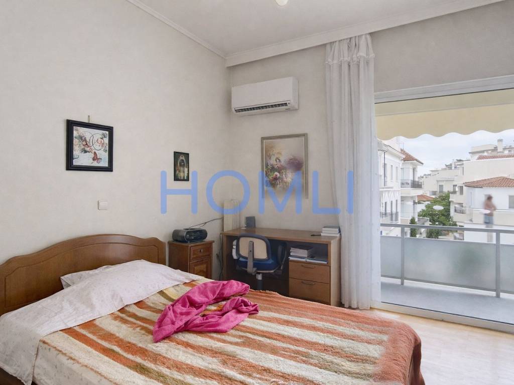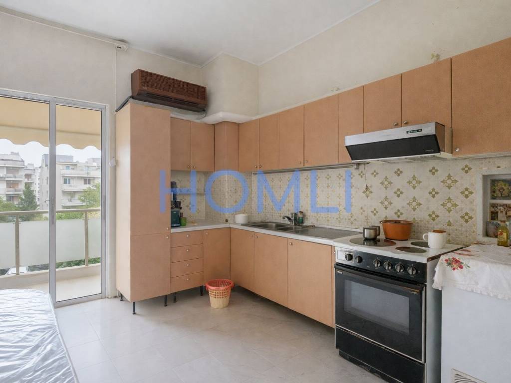 Spacious apartment with a corner balcony and a second bathroom, just a 5-minute walk from the Neos Iraklio station. It is bright and has an excellent layout, a comfortable living room, central oil heating, aluminum frames, awnings, an elevator, and a second bathroom. It is located in a privileged location, 400m from the Neos Iraklio electric train station, close to a local market, schools, parks, sports facilities, restaurants, and with easy access to main roads and Attiki Odos. HOMLI, property code 28205, contact us by phone at 2104446498.