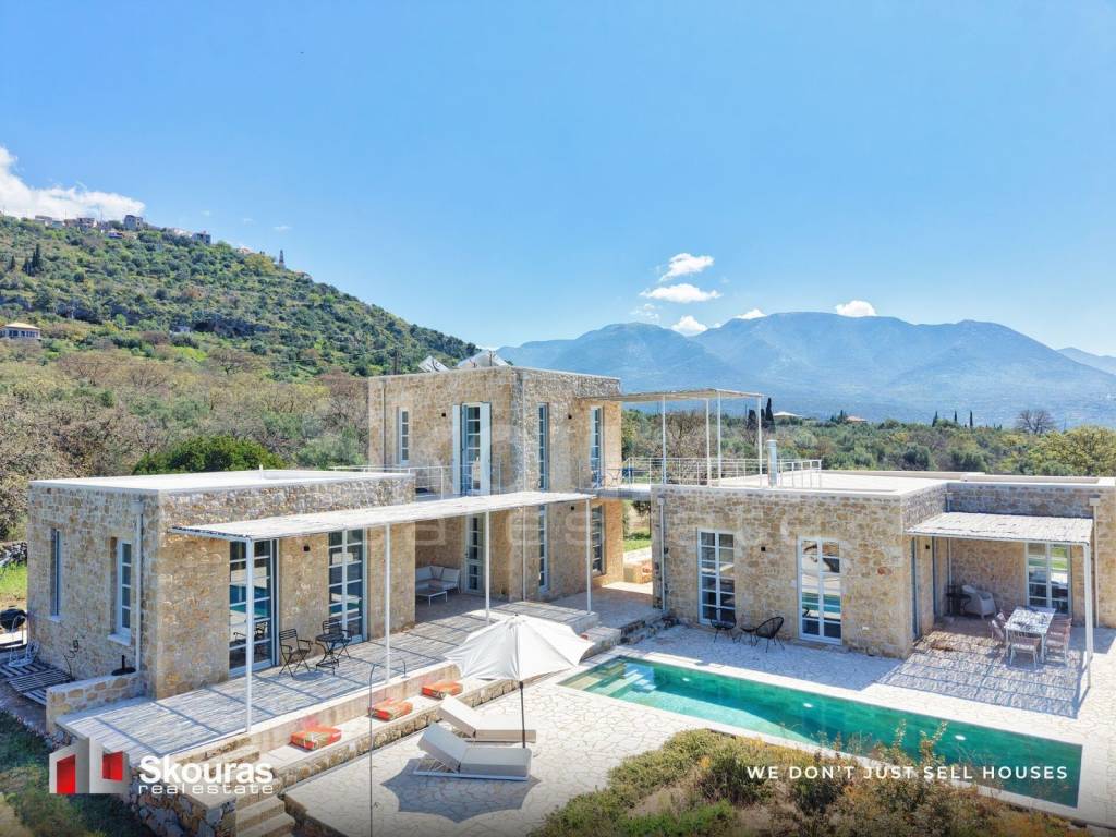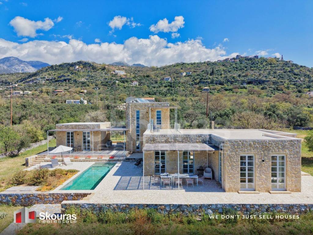 Located in one of the most sought-after and emerging areas of the Messinian Mani, in Agios Nikolaos (Lefktros), this exceptional newly built stone villa offers the perfect blend of privacy, high-end living, and breathtaking unobstructed sea views. Set on a 2,029 sq.m. plot, the property has a total living area of 260 sq.m. and consists of three independent buildings, offering flexibility, privacy, and multiple usage options. The first building features a ground-floor master bedroom with an en-suite bathroom and a small private kitchen, ideal for guests or independent use. The second building includes a ground-floor master bedroom with bathroom, a first-floor master bedroom with bathroom, and a basement used as storage space. The third and main building serves as the primary living area, featuring a spacious open-plan living room with kitchen, a master bedroom with en-suite bathroom, and an additional smaller room that can be used as an office or guest room, along with a separate bathroom. This building also provides direct access to the outdoor areas. The villa is equipped with autonomous heating via heat pump, underfloor heating, per-level heating system, and full air conditioning. It features wooden window frames, stone flooring, and an energy efficiency rating of B+. Bright, airy, and sun-filled, the property enjoys a northwest orientation and offers stunning panoramic sea views and spectacular sunsets. The outdoor area includes a landscaped garden with trees, a private 30 sq.m. swimming pool that fully meets leisure and entertainment needs, and a BBQ area, creating the ideal environment for relaxation and social gatherings. Additional features include storage room, office, water tanks, security cameras, internet connection, insect screens, and electrical appliances. The property is ideally located just 2.5 km from the nearest beach and 2.9 km from the village of Agios Nikolaos, while being approximately 5 km from the wider area center. It is also 55 km from Kalamata International Airport. This villa is ideal for a luxury holiday home, high-end rental investment, or Golden Visa opportunity. A rare opportunity for those seeking privacy, luxury, and breathtaking views in one of Greece’s most authentic coastal destinations. Skouras Real Estate #1 Greek Real Estate Agency in the Peloponnese 4 Offices: Nafplio | Kalamata | Corinth | Porto Heli 3000+ Properties | 18+ Years of Experience | Support in 5 Languages Marketing & Website – European Property Awards 2020 Marketing Techniques & Development – EPPA 2022 & 2024 Call Center: +30 27211-0135 Mobile: +30 6980877493 Email: dt@skourasrealestate.gr Property Manager: Dionysis Tsaousis Over 3,000 properties available at: www.skourasrealestate.gr Note: The property information is based on data provided by the owners. Skouras Real Estate bears no responsibility for any inaccuracies. ID card or passport required for property visits. Map locations are approximate.​