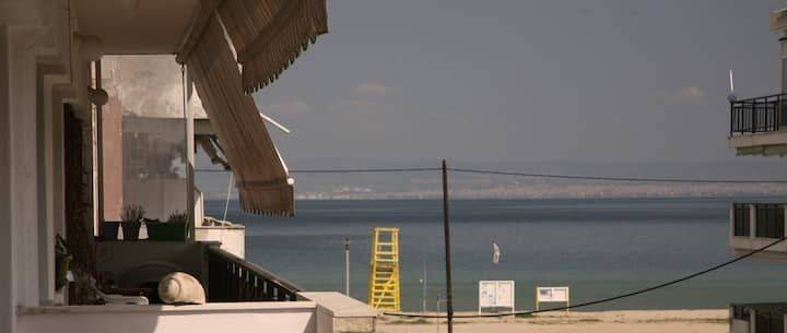 For sale: 95 sqm apartment (80 sqm net) on the 1st floor, just 15 meters from the sea. Bright and dual-aspect, featuring 3 bedrooms, living room, kitchen, and bathroom. Equipped with an energy-efficient fireplace, autonomous oil heating, solar water heater, full thermal insulation, and a security door. Includes front and rear balconies with awnings, as well as a yard with BBQ area. Ideal for both permanent residence or investment.