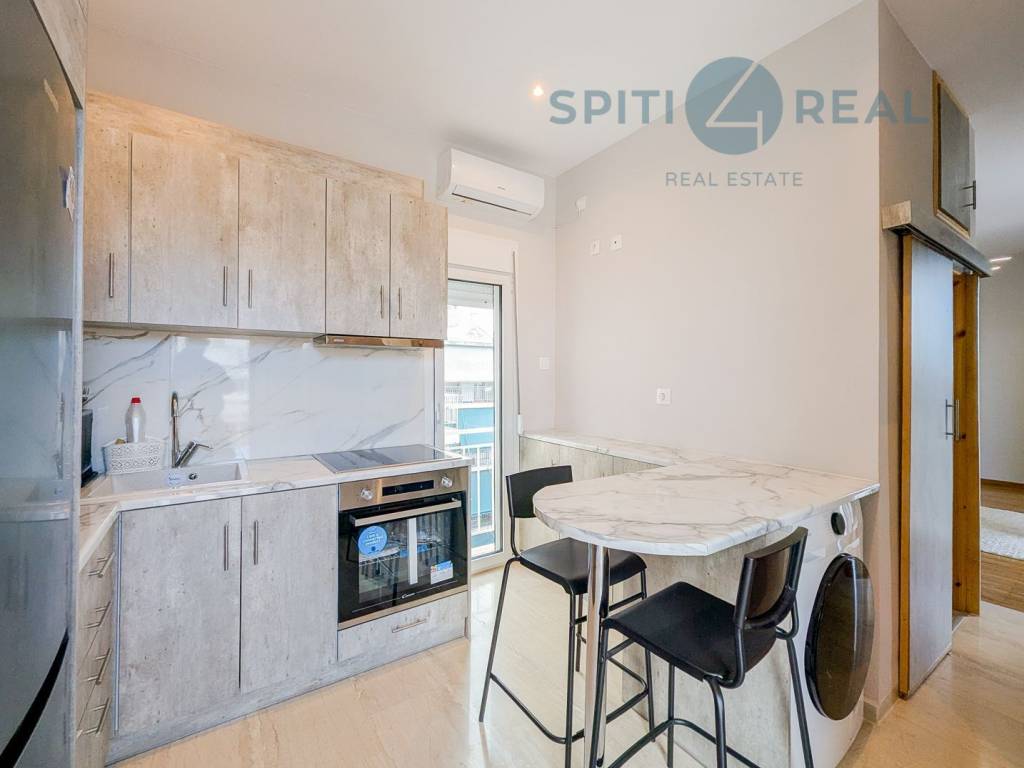 Near Laskaridou and Dimitrakopoulou, 5 minutes from the subway station "Tavros", airy, bright, luxuriously renovated, fully furnished and equipped with all the electrical apliances, whole-floor apartment, 1 bedroom, hall kitchen, bathroom, spacious veranda with awnings and nice view, aluminum window frames with double glazing, reinforced door, 2 air conditioners, solar water heater, freshly painted, without central heating, minimum monthly communal fees. The property is located in a great area, within the marketplace and next to the square. Real estate agency "Spiti4Real", listing code (S2024).