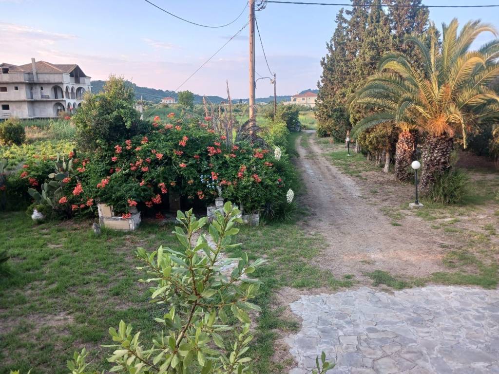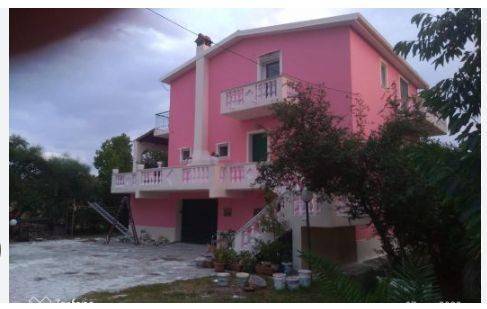 The villa comprises: ground floor with a large garage and storage room with a toilet. The first floor comprises a spacious living room with fireplace and kitchen, one bedroom, one bathroom, and a large veranda. The second floor comprises three bedrooms and one bathroom. Large plot with fruit trees, a barbecue, a water well, and a driveway lined with palm trees and an automatic gate. Independent LPG gas heating. Distance: 3 km from the sea, 10 km from the airport, 5 km from Zakynthos town.
