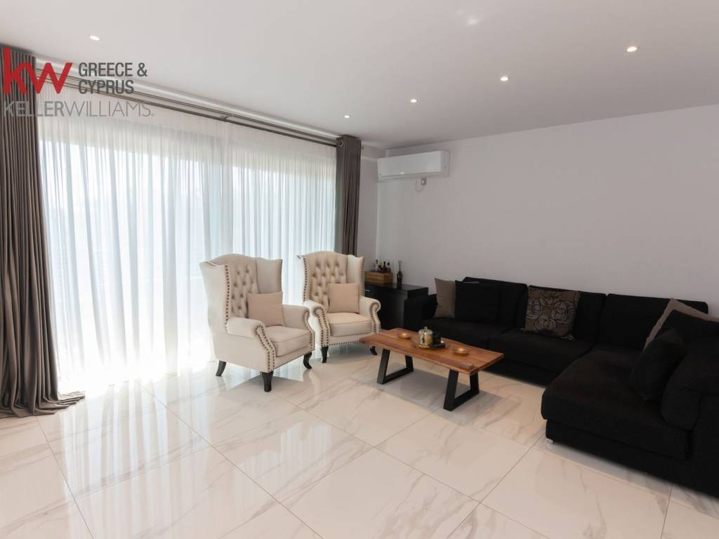 Exclusively Managed by KW Solutions Group. Corner Maisonette for sale in the Paiania – Lagou Triangle area, with a total area of ​​249.31 sq m, developed on three levels and located on a plot of 215 sq m. The property has a building permit in 2021, was completed in 2022 and is in very good condition, offering modern amenities and high quality construction. The ground floor is 74.95 sq m. and consists of a living room with an energy fireplace, open plan to the fully functional kitchen (with all electrical appliances) and a wc. The exit from the living room leads to a terrace and the exit from the kitchen leads to the back garden of 40 sq m. The 1st floor is 78.5 sq m. and consists of three bedrooms, one of which is a master with its own bathroom (with shower) and another bathroom (with shower). All bedrooms have access to a balcony. The attic is 14.98 sq m. and can be used as an office space and leads to the exclusive use of a 72.09 sq m terrace. The basement, which is 80.88 sq m., includes a parking space, storage room, bathroom (with shower) and an open playroom. There is also pre-installation for installing a kitchen. There is an internal elevator, which serves from the basement to the 1st floor, as well as an internal staircase. It has underfloor heating with a heat pump, solar and boiler, a thermal facade that ensures better insulation in the property, aluminum frames with double glazing, screens and electric shutters, tiled floors, three-phase electricity, internet, while for the security of the house there is a security door, video intercom, alarm system and security cameras. In addition, the maisonette is designed to serve the needs of the disabled (elevator, bathroom and bedroom entrance). The property is urbanistically arranged, with a ready-made file for the transfer. It is an ideal choice for a modern and comfortable family home in a quiet area. For more information: KW Solutions Group, tel.: 2130414087, email: info@solutionsgroup.gr. It is necessary for the indication of the property to present the ID card or passport of ALL those who wish to see the property, before signing (by all) the relevant Indication Order. Finally, ask our Consultant about the Renovation possibilities and the advantages that our group company, “Resolutions - Renovations”, offers you. See more on our main site: https://solutionsgroup.gr/