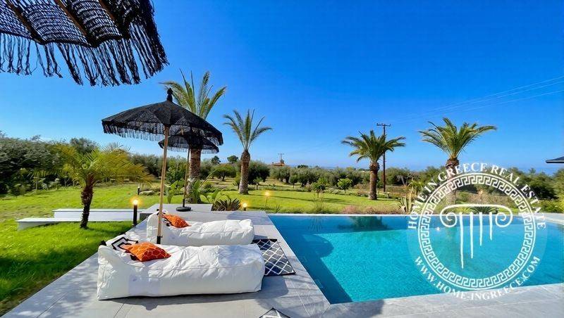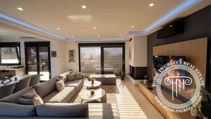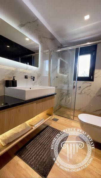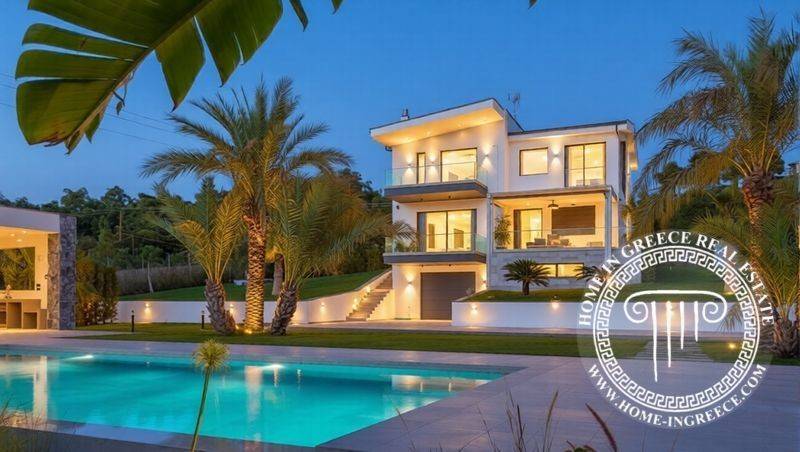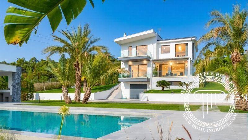 Property Code 1114 - Nea Skioni, Pallini (Halkidiki). New, luxurious detached house, beautifully landscaped garden. Swimming pool and barbecue area. Palm trees imported from Spain. Garage for 2 cars and open parking for over 4 cars. Garden with olive trees over 100 years old. The villa is sold fully furnished and ready to use. With sea views and just a few meters from the beach (200 m.), this private, quiet oasis offers a combination of nature and art. The impressive entrance welcomes you to this unique 200 sq.m. residence, which offers 4 bedrooms and 3 bathrooms, providing comfort for the whole family. The kitchen and dining room are open to the living room with floor-to-ceiling windows, creating a warm space with a fireplace. French doors lead to an expansive, paradise-like terrace with outdoor seating around the private pool. Impressive windows in the staircase extend from top to bottom, offering views of the manicured garden. The villa, built in 2021, has been designed for luxury with a simple and easy-to-maintain design. It features a separate covered car space with a workshop and storage space above. For more information, contact us. The real estate agency operates under the Greek and European legislation on brokerage according to N 4072 / 11-4-2012 FET 86A. The characteristics of the properties have been registered according to the information of the principal. My agency's brokerage fee amounts to 2% plus 24% VAT on the actual price of the final contract. Provision of Services: For the Indication of the property, it is necessary to present the police ID and the VAT number. HOME IN GREECE declares unreservedly that the presentation of the property was carried out following the ethical and professional rules and methods provided by the code of conduct of the European Valuation & Real Estate Standards (EVS 2012) and AIPP following information provided by the owner to the HOME IN GREECE team member. Real Estate Consultants may make changes to this without notice. Contact details: Prefecture of Thessaloniki / Perea 57019 / Ampelokipon 6. (+30)6988333388 (Viber - WhatsApp) (+30)2392 500056 www.home-ingreece.com voronin.realestate@gmail.com
