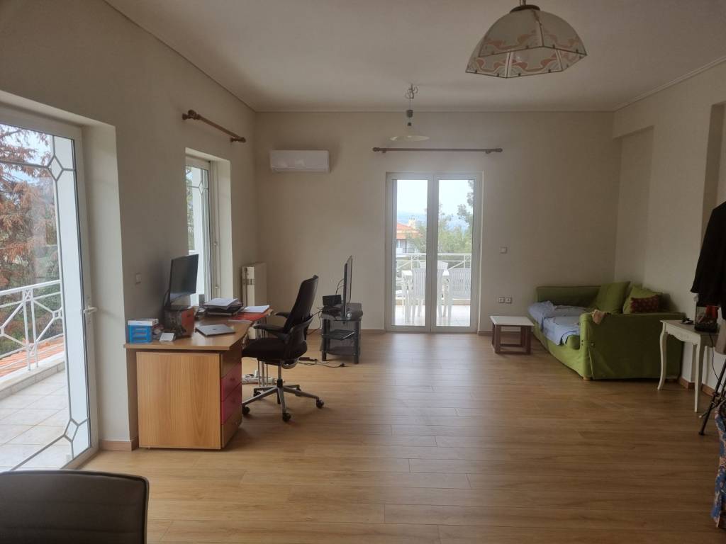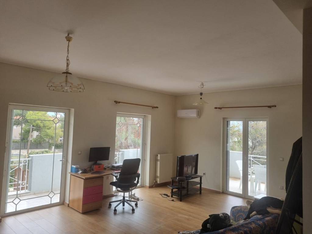 Ενοικιάζεται πολυ φωτεινό οροφοδιαμέρισμα 140 τ.μ. , στον 1ο όροφο, με μεγάλο ενιαίο χώρο κουζίνας–καθιστικού, δύο άνετα υπνοδωμάτια με ευρύχωρες ντουλάπες,μια μεγαλη βεραντα με ωραια θεα ,ενα μεγάλο μπάνιο με μπανιέρα και ενα ξεχωριστό WC. Διαθέτει επίσης ενιαίο χώρο στη σοφίτα 25 τ.μ., ιδανικό για τρίτο υπνοδωμάτιο, γραφείο ή playroom. Το διαμέρισμα είναι εξοπλισμένο με πόρτα ασφαλείας, συναγερμό, θυροτηλεόραση, διπλά τζάμια, αυτόνομη θέρμανση φυσικού αερίου και ηλιακό θερμοσίφωνα. Περιλαμβάνει ανοιχτή θέση στάθμευσης στον κήπο και δεν επιβαρύνεται με κοινόχρηστα για τον κήπο και τον φωτισμό του οικοπέδου. Διαθέσιμο από 1 Μαΐου. Ενοίκιο: 1.150 €.