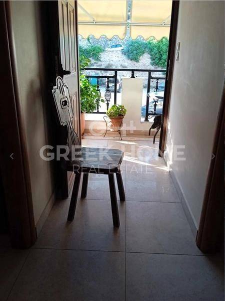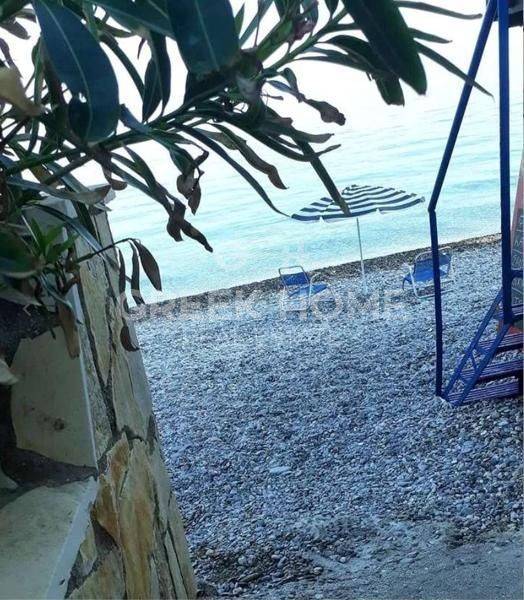 Evrostini, Derveni - Apartment 102sqm plot 216sqm, unfurnished, bedrooms 2, 1st, very good condition, year built 1977, renovation year 2010, energy class E, living room, hall, kitchen, bathroom, wc, heating type: autonomous (oil), air condition, quiet, luminous, corner, sea view, storage space, solar heater, boiler, fireplace, balcony 10sqm, tents, loft storage, aluminum frames, double glazed windows, door screen, marble & tile floors, secure door, alarm, under floor heating, sea front, east-southern orientation, close to sea (up to 5m).