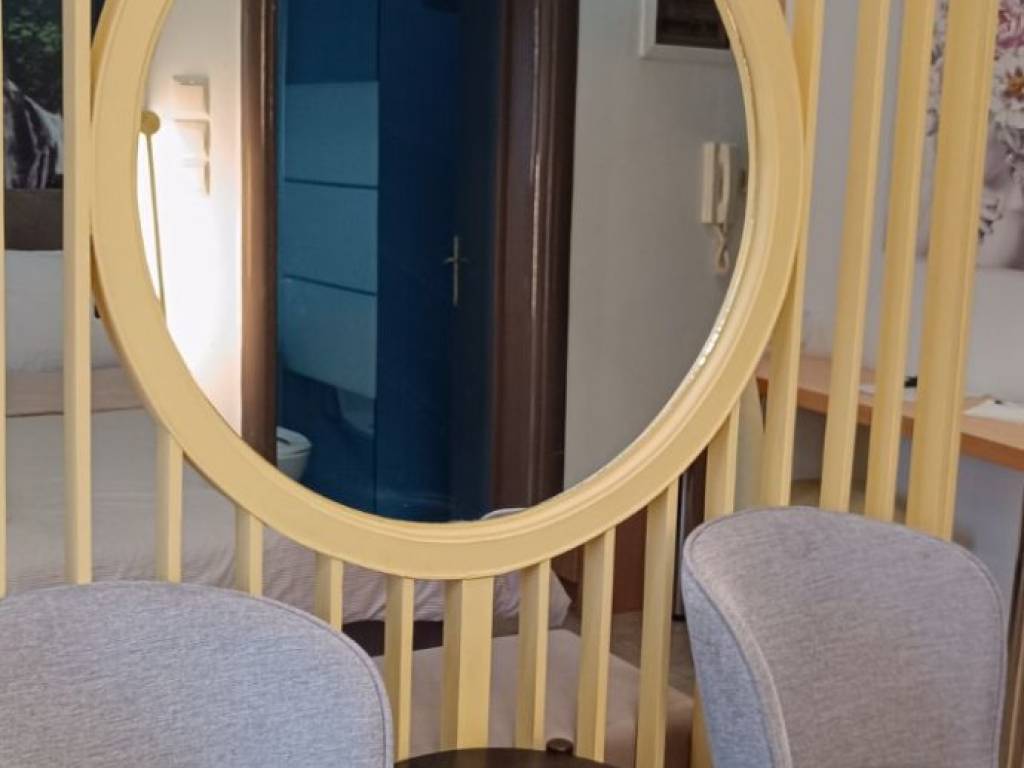 Fully Furnished & Renovated Studio 29 sq.m. (3rd Floor) A fully renovated and furnished 29 sq.m. studio apartment is available for rent, located on the 3rd floor of a residential building constructed in 2004 and renovated 2 years ago. The apartment is fully equipped and ready to move in, offering all necessary furniture and electrical appliances. Includes: Fully equipped kitchen with electrical appliances TV Air conditioning unit Wardrobe Ironing board & iron Hair dryer The property features a comfortable veranda with a nice view, furnished with an outdoor table and chairs. Additional features: Autonomous natural gas heating (metered) Window screens Covered parking space Location: Directly opposite a bus stop Next to the General Hospital of Larissa Close to pharmacy, supermarket, school, and all essential amenities Less than 10 minutes from the city center Ideal for students or professionals seeking a fully equipped and comfortable living space.