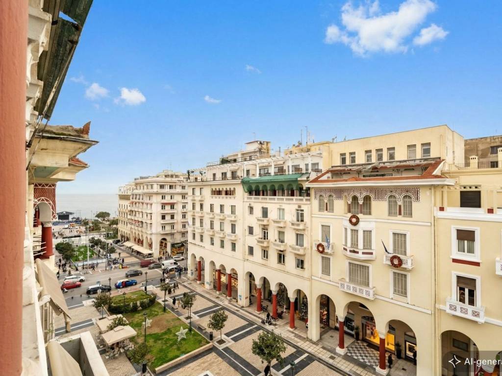 In the heart of Thessaloniki, on Aristotelous Street, a unique apartment of 130 sq.m. on the 5th floor of an emblematic, listed building constructed in 1956 is for sale. Corner and prominent, with excellent natural brightness. It stands out for its panoramic view from the pedestrian street of Aristotelous to the beach, enjoying the blue of Thermaikos. The apartment is located in a privileged spot that combines the vibrancy and pulse of the city with the freedom and comfort of a prestigious residence. Ideal for those who appreciate elegance and timeless style in a building of historical and architectural interest. The property's amenities and advantages include excellent access to public transport and transportation and its location, surrounded by services, market, luxury shops, cafes and entertainment venues. Excellent choice for both owner-occupation and investment exploitation, due to the high social status of the area. A space that offers the ideal combination of security, comfort and access to every aspect of daily life in the most central and emblematic neighborhood of Thessaloniki. Aristotelous Square Aristotelous Square is one of the most iconic and central locations in the city of Thessaloniki. Situated in the heart of the city, it serves as the cultural and social hub of the area. The square offers a unique blend of architectural beauty and vibrant activity. It is surrounded by impressive buildings, monuments, and commercial establishments. The square is a favorite destination for residents and visitors alike, providing an ideal spot to enjoy a coffee, take leisurely strolls, and soak in the sea view. Aristotelous Square hosts various events and cultural activities throughout the year, making it a dynamic space for entertainment and social engagement. For those who desire to live in the heart of Thessaloniki, experiencing the bustling urban lifestyle with all the city's conveniences at their doorstep, Aristotelous Square is the perfect place. Explore our unique residences in Aristotelous Square and relish the urban way of life in this beautiful cultural space.