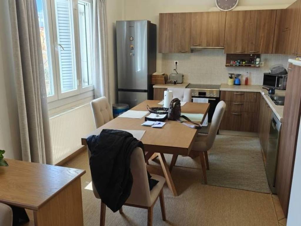 With central oil heating, air conditioning, and modern amenities such as insect screens, double-glazed windows, and dimmer lighting, it offers a warm, airy, and dual-aspect atmosphere. Additionally, the uncovered space at the rear provides storage, while the view of Metamorfosi Park adds a sense of tranquility. It is located just 150 meters from the central Miaouli Square, in a quiet neighborhood, ideal for permanent residence or investment use.