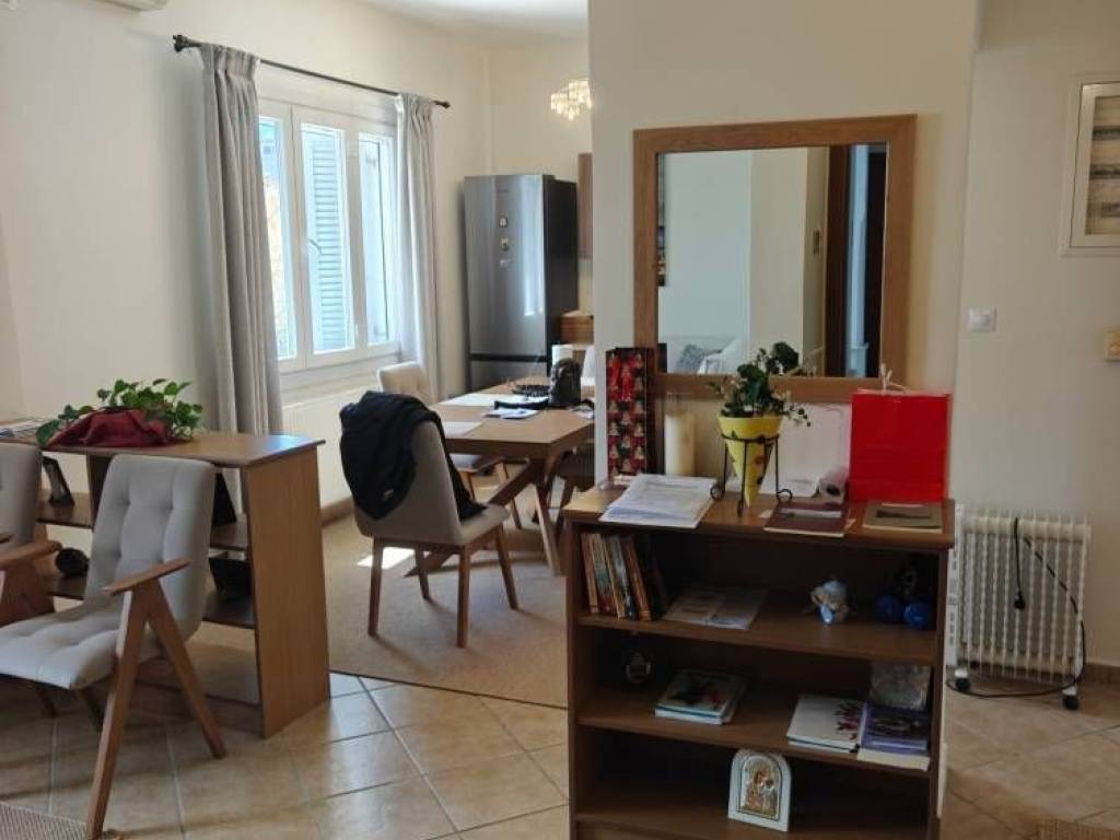 In the heart of Metamorfosi, in the beautiful Ermoupoli of Syros, we present to you an elevated ground-floor apartment of 100 sq.m., ideal for those seeking comfort and a prime location. The property, built in 1972, features three bright bedrooms, a spacious open-plan living room, dining area, and kitchen, as well as an additional room that can serve as an office or a third bedroom.
