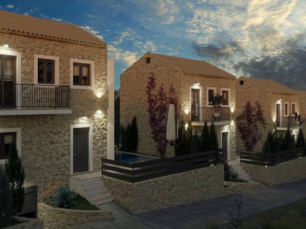 Located in the cosmopolitan resort of Syvota on the Ionian coastline of mainland Greece, this project comprising four detached homes with private pools will offer peace and tranquility while being located close to many beaches, sights and attractions. A quick walk will take you to the heart of Syvota, with its picturesque marina.Each home will be built on a 125 sqm plot and will comprise a total area of 88 sqm, distributed as 44 sqm on the ground floor and 44 sqm on the first floor. There is also the option to add a 50 sqm basement, to be used either as a small-car garage or as storage space as an extra, at an additional cost. The ground floor layout includes an open-plan living-dining room and kitchen, as well as a staircase leading to the first floor. All villas will have two bedrooms on their first floors and two bathrooms, one on each floor. They will also feature balconies with views of the town of Syvota and the surrounding countryside.Each property comes with a well-laid-out outdoor area with its own pool (3 x 5 m) and garden, ideal for relaxing in quiet surroundings.