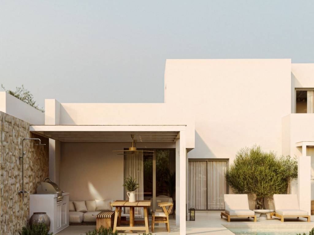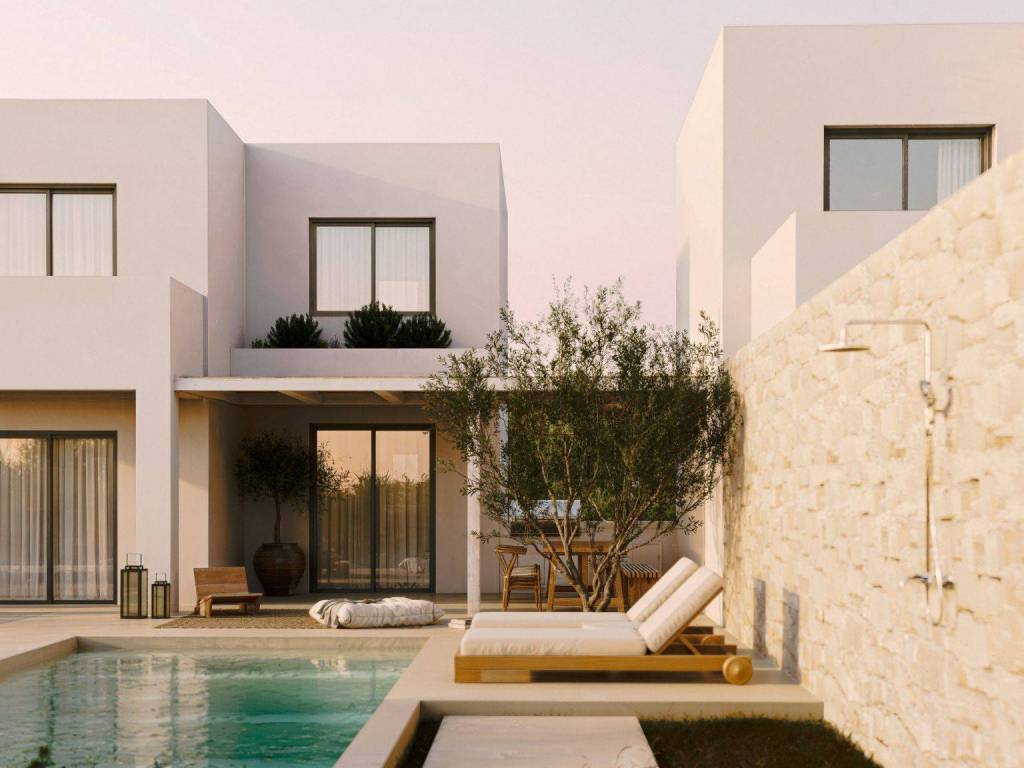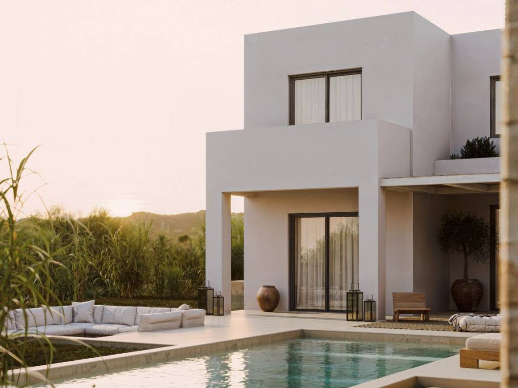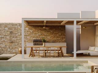 In the heart of Naxosâ most sought-after coastline, just steps from Plaka Beach, two exceptional villas redefine luxury island living in the Cyclades.Part of a five-villa exclusive project, the properties are just 200 meters away from the pristine Plaka beach.Villa A: Unfolding over two floors and featuring a basement, this 153 sqm villa has the exclusive use of 675 sqm of the complex's grounds and two covered parking spaces. The basement area of roughly 49 sqm houses the water tank, ensuring an uninterrupted water supply, as well as a roughly 41 sqm space with two windows. It communicates with the main living space of the villa by means of an exterior staircase. The ground floor comprises a spacious living/dining room and open-plan kitchen, a bathroom and a bedroom. An interior staircase takes us to the first level of the villa, featuring two more bedrooms as well as a bathroom. The bedroom opens up to a 9 sqm balcony with sea views. The villa features a 32 sqm swimming pool (4 x 8 m), pergolas housing an outdoor kitchen and living area, and a recessed seating space next to the pool and sun deck.Price: 580,000 EurosVilla B: This 189 sqm villa also unfolds over two floors and features a basement. An external staircase grants access to the basement, housing a water tank, a large open space with windows to the stairs, as well as a spacious storage space. The ground floor of the villa houses a commodious living/dining room and open-plan kitchen with floor-to-ceiling sliding doors opening up to the pool and sundeck area. It also features two bedrooms with one of them having direct access to the villa's garden, and the other overlooking the pool and sundeck area. Also on this floor we find a bathroom, as well as a guest WC and the staircase leading to the first floor. The first floor houses the third bedroom and a bathroom. The bedroom opens up to a spacious terrace with open views. The villa includes a 32 sqm swimming pool (4 x 8 m), shaded pergolas hosting an outdoor kitchen and relaxing living area, and a recessed seating nook beside the pool and sun deck. There are also two covered parking spaces on the villa's grounds.Price: 890,000 EurosBoth villas feature double-glazed frames, air conditioning units to cater for both heating and cooling, solar water boilers, as well as a pre-installation for a heat pump and for an alarm system.