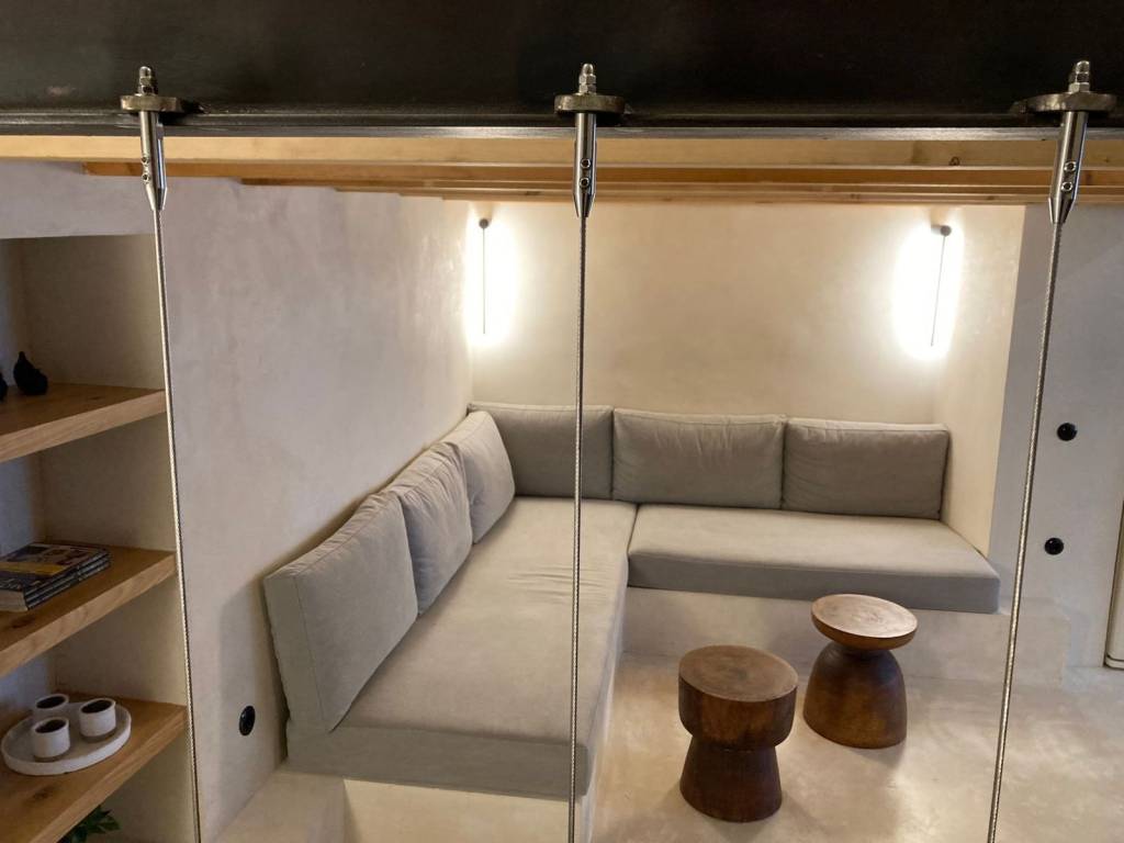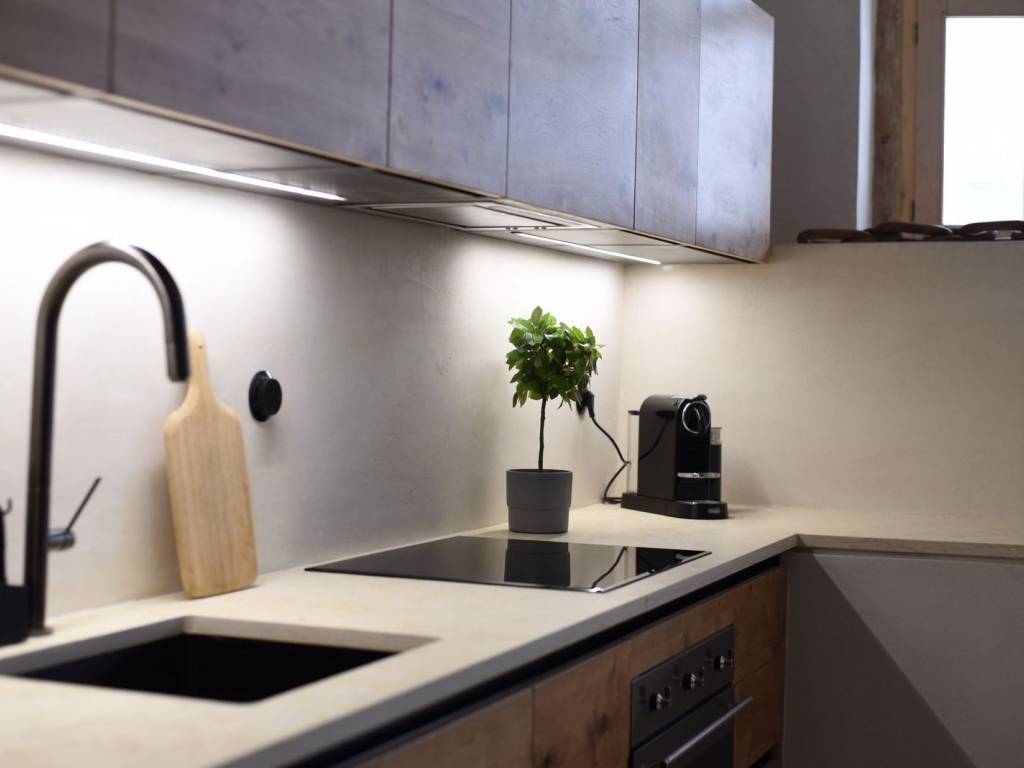 The ground floor features an open-plan living and dining area with a fully equipped kitchen, fitted with high-end appliances. All floors are connected with a combination of steel and built staircases. On the upper floor, youâll find a bedroom with built-in closet space. The lower ground floor includes a comfortable second bedroom with ample closet space and a shower-equipped bathroom.