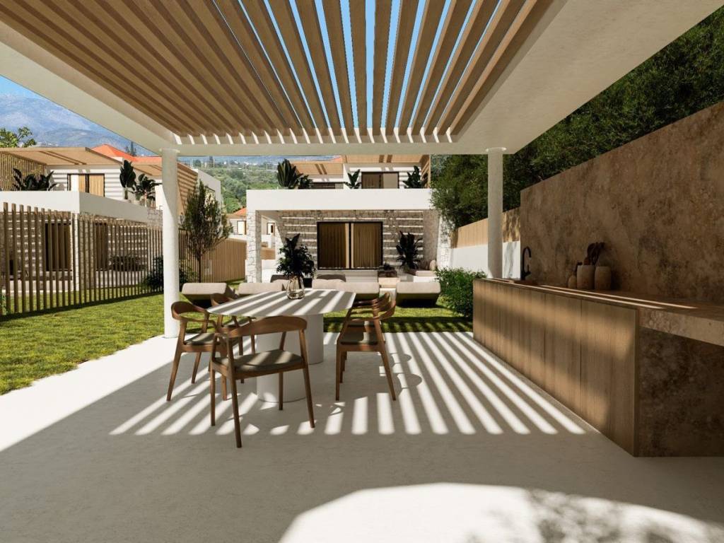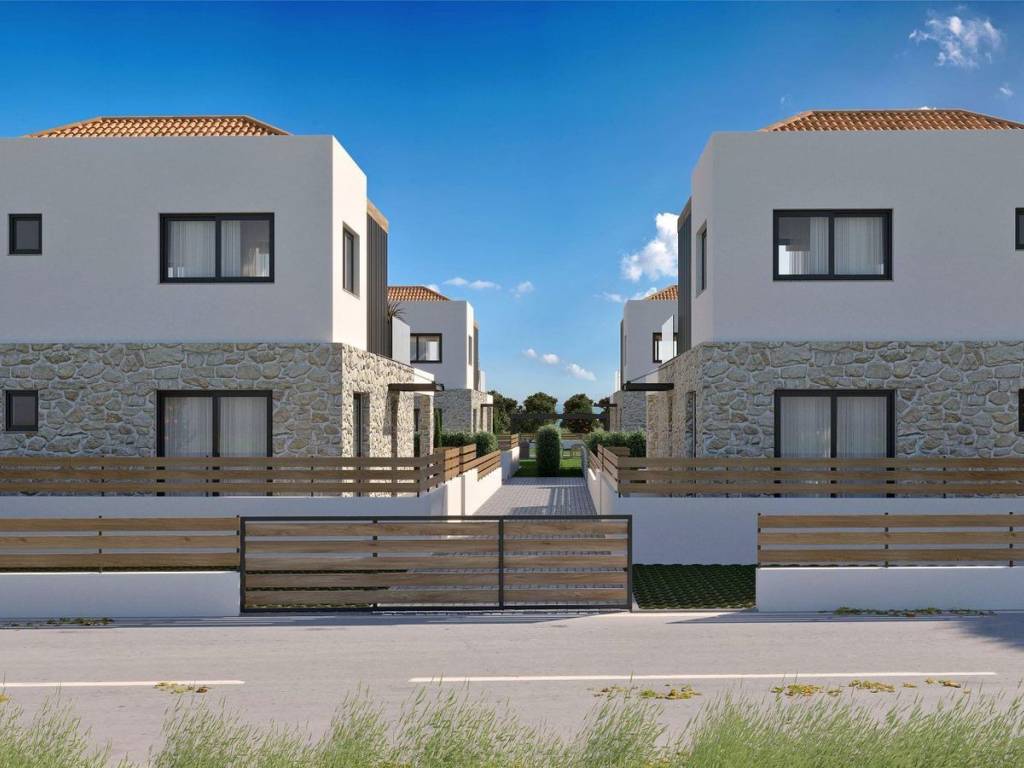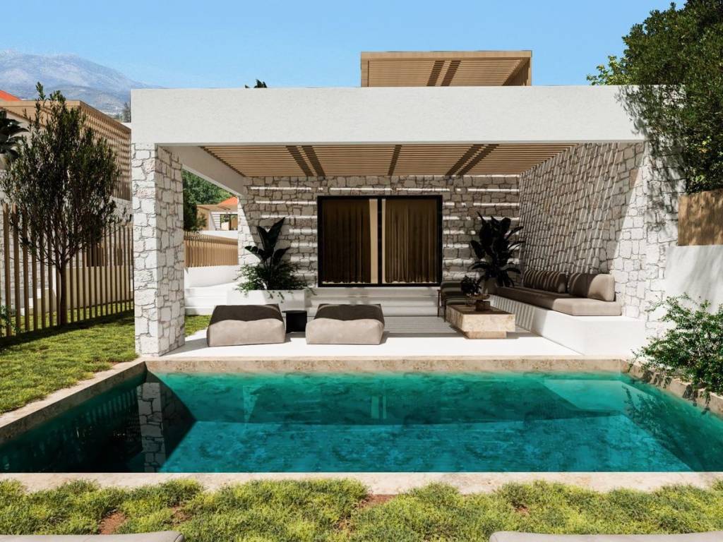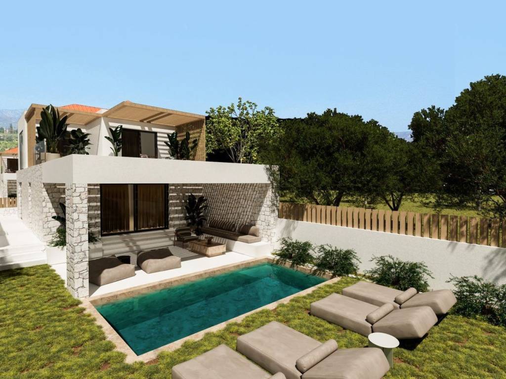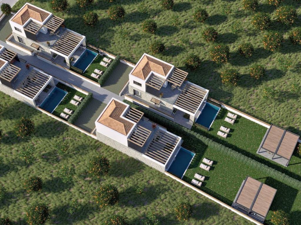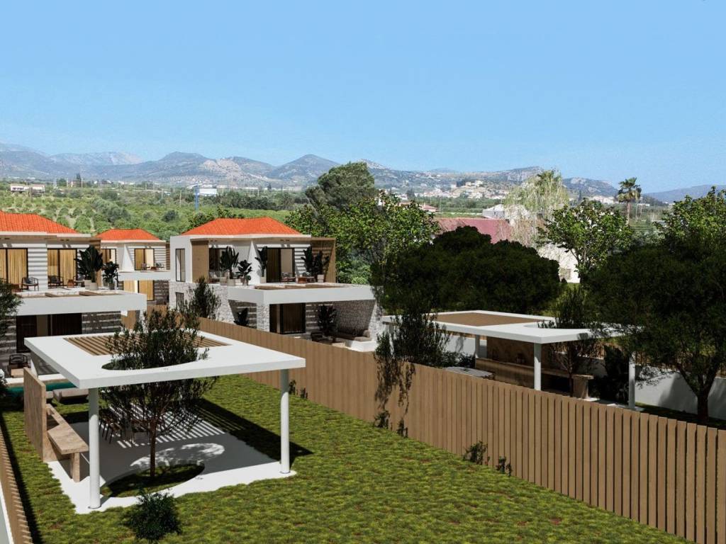 Where orange trees stretch toward the sun and the air carries the sweetness of citrus, a quiet life unfolds minutes from Nafplio. Situated outside the village of Nea Tiryntha, this four-villa complex offers comfort, privacy, and a relaxed way of living in the Peloponnese. Only a 12-minute drive from the historic town of Nafplio, the location blends the tranquillity of the countryside with convenient access to one of Greeceâs most charming coastal destinations.Each villa is thoughtfully designed, offering approx. 100 sqm of living space spread over two floors. On the ground floor, youâll find an open-plan kitchen, living, and dining area, along with one bedroom and a bathroom with a shower. From here, large doors open out to a wooden pergola with an outdoor seating and dining area, which flows seamlessly into the 18 sqm private pool, perfect for enjoying the warm Peloponnesian sun.