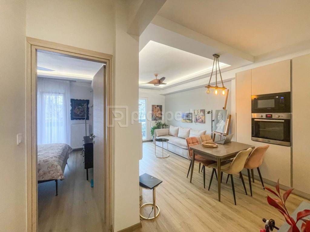 For sale in Kifisia, an exceptional shiny apartment of 54 sq.m. (49 sq.m. net), situated on the mezzanine floor of a well-maintained building, fully and radically renovated in June 2025. The property consists of one comfortable bedroom with a built-in wardrobe, a spacious and bright living room with an open-plan, fully equipped branded kitchen and discreet hidden LED lighting, a modern bathroom, and a large front-facing balcony 6 sq.m. offering unobstructed open views. It features a reinforced security door, energy-efficient synthetic window frames with double glazing, laminate flooring, an additional storage space/walk-in closet at the entrance, air conditioning with 2 new air conditions, and autonomous heating with a natural gas boiler, while also being fully equipped with an alarm system, security cameras, electric awnings and insect screens. It is ideally located on the borders of the municipalities of Thessaloniki and Kalamaria, with direct access to the ring road, metro, public transport, and a wide range of shops and dining options. The residential complex also offers a beautifully landscaped communal garden with lush greenery. Additionally, the property can be offered fully furnished and equipped, upon agreement, at an extra cost. https://marketplace.theprosperty.com/listings/16942 ☎️ 210 6812500