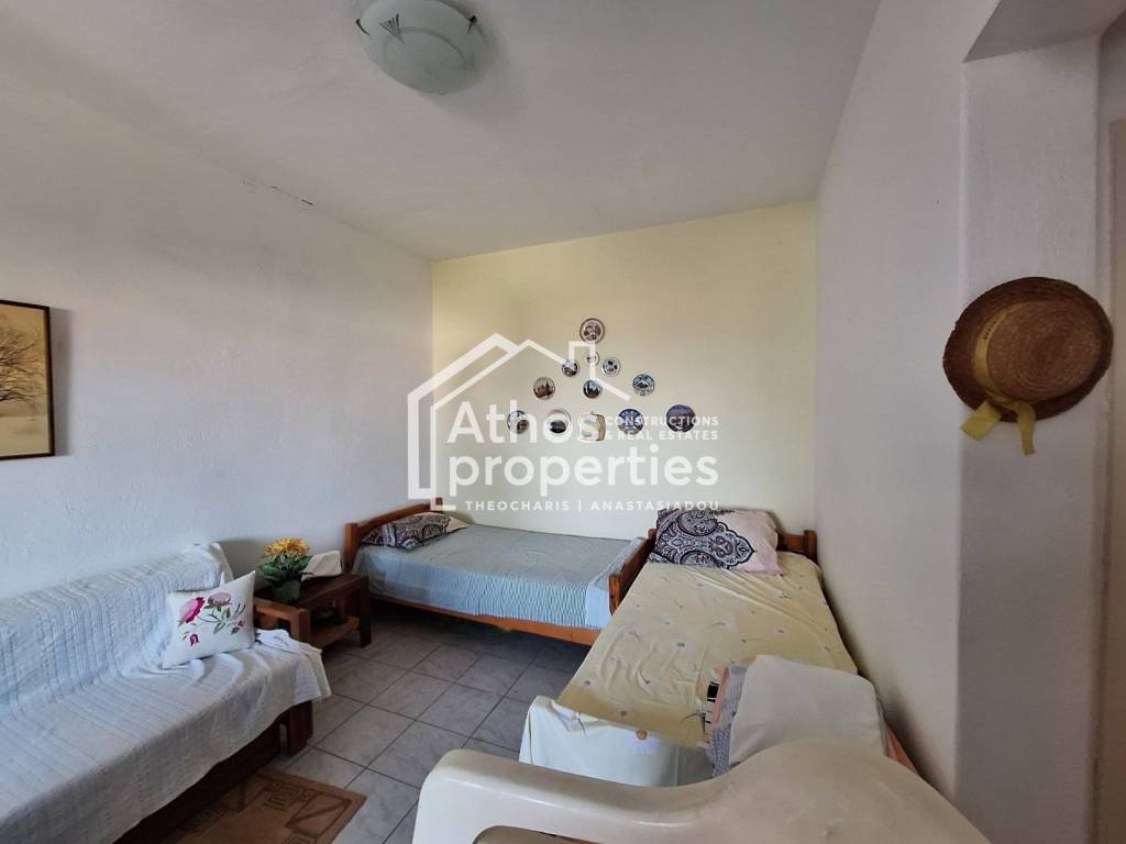 For sale: a 50 sq.m. detached house in Nea Roda, Halkidiki, on a 385 sq.m. plot, in a location with a beautiful sea view and only about 320 meters from the beach. The house consists of: ✅ open-plan living room & kitchen ✅ 1 bedroom ✅ 1 bathroom ✅ large terrace with sea view ✅ storage room The plot has remaining building allowance, as the maximum permitted buildable area is up to 240 sq.m., offering strong potential for extension or future development. An excellent opportunity for anyone looking for a holiday home with a yard, close to the sea, in an area with strong tourist interest. Contact us for more information and to arrange a viewing. ATHOS PROPERTIES, contact phone: +306976380299, +306955333863, +302377111294, email: ak@athosproperties.com, aa@athosproperties.com