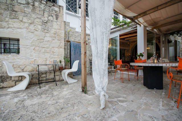 Η βίλα Pervola με την αρχιτεκτονική mixer και την υπέροχη διακόσμηση βρίσκεται στο Ηράκλειο, ανάμεσα στις καρυδιές, τα πλατάνια και τα παραδοσιακά σπίτια του χωριού "Σάρχος" κοντά στον Κρουσώνα! Η πισίνα και ο χώρος που την περιβάλλει αγκαλιάζονται από τα γύρω βουνά προσφέροντας ιδιωτικότητα και επαφή με τη φύση! Η βίλα Pervola είναι ένα συγκρότημα κατοικιών με βοηθητικούς χώρους συνολικής επιφάνειας 355τ.μ. με πισίνα 43τ.μ. που περιβάλλεται από οικόπεδο 1.393τ.μ. γεμάτο ελαιώνες, οπωροφόρα δέντρα και λουλούδια! Προσφέρει άνετη διαμονή τόσο σε δωμάτια όσο και σε εξωτερικούς χώρους! Οι 6 ανεξάρτητες κατοικίες μπορούν να φιλοξενήσουν έως και 24 άτομα! Όλα τα δωμάτια διαθέτουν κουζινάκια, μπάνια, κλιματισμό, ιδιωτικά μπαλκόνια ή βεράντες! Οι άνετοι κοινόχρηστοι χώροι προσφέρουν την ατμόσφαιρα μιας μικρής γειτονιάς χωριού! Οι χώροι γύρω από την πισίνα έχουν θέα στη φύση με αμπελώνες και ελαιώνες! Δίπλα στην πισίνα υπάρχει ένας μεγάλος εξωτερικός χώρος τραπεζαρίας. Η κεντρική αυλή και η όμορφη ατμόσφαιρα αποτελούν το ιδανικό μέρος για την οργάνωση πάρτι γενεθλίων, bachelor, μικρών σεμιναρίων (γιόγκα, διαλογισμός και μασάζ)! Κατάλληλο και για σεμινάρια ως εκδηλώσεις με παραδοσιακές γιορτές, μουσική, τραγούδι και κρητική κουζίνα! Ιδανικό μέρος για ομαδικές πεζοπορίες, σεμινάρια αγροτουρισμού, κρητικό φαγητό και ψωμί, συγκομιδή βοτάνων και αιθέριων ελαίων, απόσταξη και παραγωγή παραδοσιακού σαπουνιού από αγνό ελαιόλαδο! Η Villa Pervola απέχει 25 χλμ. από το αεροδρόμιο του Ηρακλείου και 150 χλμ. από το αεροδρόμιο των Χανίων! Το κέντρο της πόλης, το λιμάνι και το Αρχαιολογικό Μουσείο απέχουν μόλις 23 χλμ.! Η Αμμουδάρα είναι η κοντινότερη παραλία και βρίσκεται σε απόσταση 25 χλμ.! Το παλάτι της Κνωσού 25 χλμ., το κρητικό ενυδρείο περίπου 35 χλμ.! Μόλις 10 χλμ. μακριά και στο δρόμο για να συναντήσουμε το Γενικό Νοσοκομείο Σάρχου του Πανεπιστημίου Κρήτης και το Ινστιτούτο Έρευνας και Τεχνολογίας! Συνεχίζοντας περνάμε από τα χωριά Βούτες, Πενταμόδι και Κυθαρίδα! Είναι σ ένα ορεινό χωριό και η απόσταση της Villa Pervola από την πλατεία του χωριού είναι μόλις 100 μέτρα! Στα βορειοδυτικά, περίπου 1 χλμ. μακριά θα βρείτε τον Κρουσώνα! Ο Κρουσώνας είναι ένα μεγάλο χωριό με σούπερ μάρκετ, αρτοποιεία, φαρμακεία, καφετέριες, μπαρ και εστιατόρια! Λίγο έξω από το χωριό βρίσκεται η ορθόδοξη μονή της Αγίας Ειρήνης, πάντα έτοιμη να υποδεχτεί πιστούς και επισκέπτες! Ανατολικά βρίσκονται τα χωριά Άγιος Μύρωνας, Πυργού, Ασίτες που διαθέτουν επίσης πολλά μίνι μάρκετ, αρτοποιεία, καφετέριες και ταβέρνες! Από το κοντινό χωριό Ασίτες περνάει το μονοπάτι Ε4 και απέχει 2 χλμ. από τη Βίλα Περβόλα, ενώ στο ίδιο χωριό βρίσκεται το ανδρικό ορθόδοξο μοναστήρι Γοργολαΐνη! Η περιοχή με τα παραδοσιακά και αγνά προϊόντα που παράγει (φρούτα, λαχανικά, γάλα αιγόπροβιο, ελαιόλαδο, μέλι και σταφύλια) διαθέτει μικρές οικοτεχνίες, γαλακτοκομεία, οινοποιεία, ελαιοτριβεία, εργαστήρια φυσικών καλλυντικών κ.λπ.! Στους πρόποδες του Ψηλορείτη και λόγω της γεωγραφικής του θέσης, το χωριό έχει άφθονα νερά! Είναι καταπράσινο με ελαιόδεντρα και οπωροφόρα αμπέλια, πολλούς κήπους. Μέσα στη φύση, μαζί με την καλλιέργεια και τα πολλά γεωργικά προϊόντα, προσφέρονται αξέχαστες στιγμές χαλάρωσης, διακοπών και φυσικής ζωής με την οικογένεια ή την παρέα σας. Το χωριό διαθέτει την εκκλησία του Τιμίου Σταυρού με τις όμορφες κρητικές τοιχογραφίες,