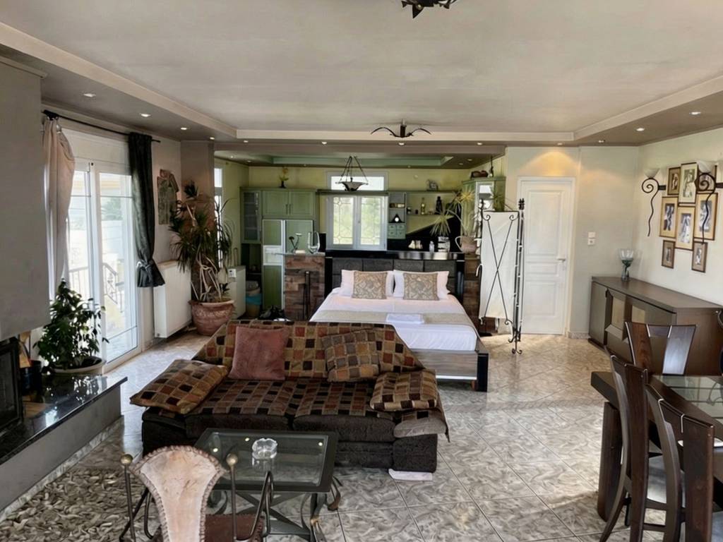 Open space loft with views over the bay of Porto Rafti, set in a quiet spot on the hillside. Filled with natural light and fresh air, it offers a calm, relaxed atmosphere while being just 10 minutes from the airport. The beach, port, shops, restaurants, cafés, and summer open-air cinema are all within walking distance. A supermarket is just a 5-minute walk away, and on-site parking is available. The space features an open studio layout, a fully equipped kitchen, a bathroom with shower, WiFi, a queen bed with a very comfortable pillow-top mattress, a fireplace, and a spacious veranda with a table for up to six people—ideal for dining or relaxing while enjoying views of the bay, the islet of Rafti, and the surrounding hills. Ideally located near Vravrona and the Temple of Artemis, 25 minutes from Sounio, 20 minutes from Rafina and Lavrio, and 40 minutes from central Athens.