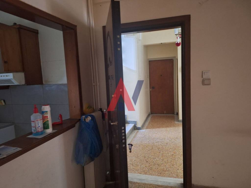 Apartment 69 sq.m. for sale on the raised ground floor, in the America Square area. It comprises two bedrooms, one bathroom, and an open-plan living room-kitchen. Built in 1968, it is located in an apartment building with an elevator. It is front-facing, bright, and dual-aspect, with city views. The bedroom floors are wooden, while the remaining areas have mosaic flooring. Its energy class is H and the selling price is €87,000. Property ID: VAN03579