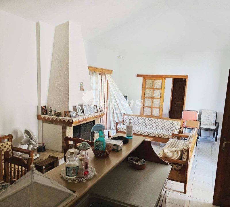 Property code: 830805 - Ermioni District Agiou Charalampous. FOR SALE detached house with sea view and open horizon, total area 160 sq.m. Year of construction in 1992. It consists of 2 elevated ground floors of 80 sq.m / each, one of which is habited and has 2 bedrooms, kitchen, living room, 2 bathrooms, heating, air conditioning, tile and wooden floors, fireplace, awnings, solar water heater and the other is unfinished and also has a basement. Private garden with olive trees - Price: €270,000