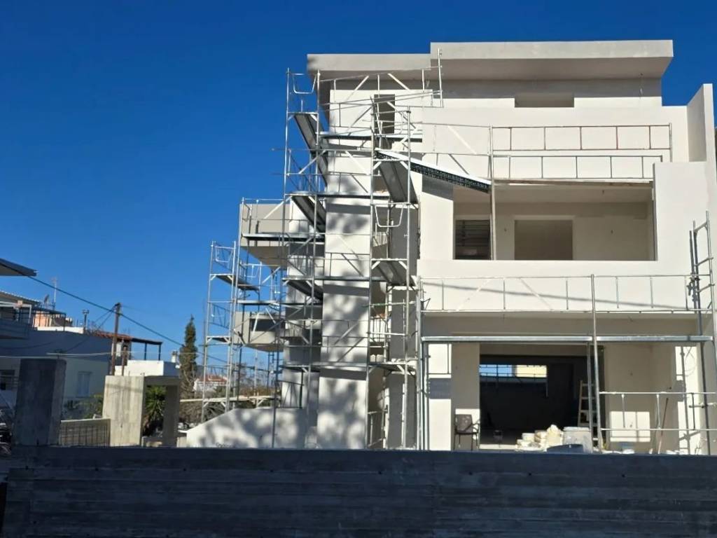 In Agios Onoufrios, Akrotiri (Chania), a modern residence is offered for sale, currently in the final stage of construction and to be delivered fully completed. The property features clean architectural lines and a functional layout, arranged over three main levels (ground floor, first floor and attic), along with an additional basement level. The upper floors — and especially the attic — enjoy sea views. The residence will be delivered fully finished and ready for immediate use. Total Areas Main living areas: 224 sq.m. Basement: 108.10 sq.m. Total enclosed areas: 331.60 sq.m. Auxiliary / semi-outdoor areas: 66.00 sq.m. Total built area: 397.60 sq.m. Breakdown Basement: 108.10 sq.m. Ground floor: 93.91 sq.m. First floor: 91.94 sq.m. Attic: 37.65 sq.m. Semi-outdoor areas: 19.35 sq.m. Balconies / terraces: 61.35 sq.m. Covered parking space: 26.40 sq.m. Layout Basement • Enclosed garage • Storage and auxiliary areas • Independent guest unit (approx. 48 sq.m.) with private entrance • Internal connection to the upper levels The basement can function either independently or as part of the main residence. Ground Floor • Living area • Dining area • Kitchen • Guest WC • Direct access to outdoor areas First Floor • Three bedrooms • One full bathroom • Access to balconies Attic A versatile space with sea views, featuring a jacuzzi and generous outdoor areas. There are two balconies: one facing the mountain side and one particularly spacious balcony facing the sea, which serves as the main outdoor living area. The space can be used as a bedroom, office or lounge area. Outdoor Areas • Semi-outdoor living areas • Terraces • Covered parking The outdoor space includes a garden, seating areas and a BBQ area. There is also the option to construct a swimming pool, subject to the new owner's preference. Provision has been made for electric vehicle charging. A small remaining building allowance is also available, according to current planning regulations. Summary A modern residence in a sought-after coastal location, offering a clear and functional layout along with sea views from the upper levels. Important Notice For property viewings, please present a valid ID and tax identification number, in accordance with Greek Law 4072/11-4-2012 (Government Gazette 86A). www.nikiestate.gr/en Real Estate Niki Exarchos Nikolaos Sfakion 30, Chania +30 28210 57601 +30 6945 874652 GEMI No.: 738638580000 Agency fee: 2% + VAT For the indication of the property, please present a valid ID (passport for foreign buyers) according to Greek law, according to Law 4072/11-4-2012 (Government Gazette 86A).