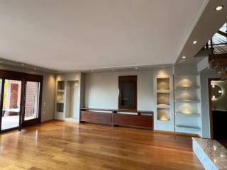The property also includes autonomous natural gas heating, fireplace and air conditioning, aluminum window frames with double glazing, security door, floors covered with Carrara marble and oak wood, private garden, barbecue, parking space, alarm systems, awnings, satellite antenna and solar water heater.
