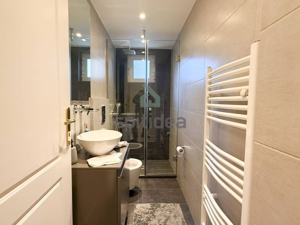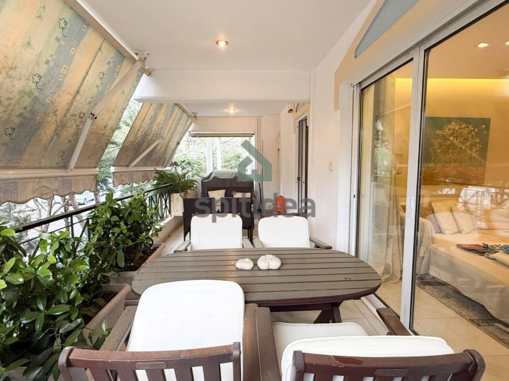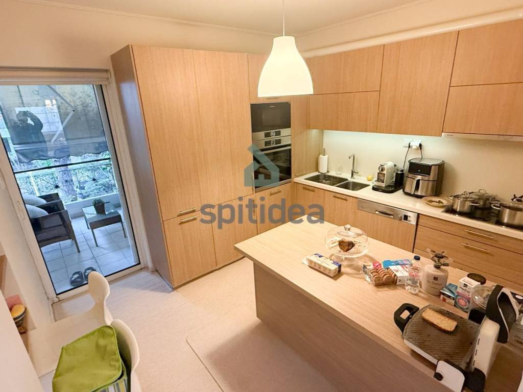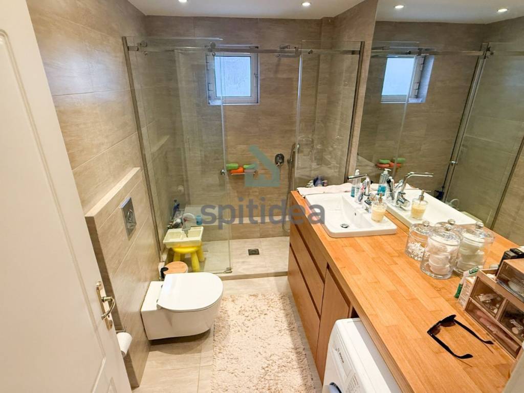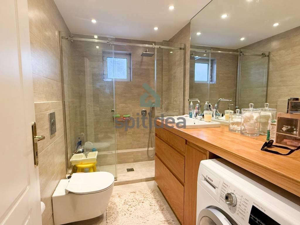 This is a fully renovated apartment of 123sqm on the 1st floor of a building built in 1996. It consists of a large living room with fireplace, separate kitchen, 3 bedrooms and 2 bathrooms. It was renovated in 2016 and has a fully renovated kitchen, two fully renovated bathrooms, autonomous natural gas heating, solar water heater, aluminum frames with double glazing, large veranda on the facade, awnings, security door, alarm, tiled floors and oak floors in the bedrooms, large storage room of 22sqm and two parking spaces, one closed and one open. It is located in a nice location, close to transportation and a local market.