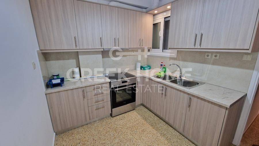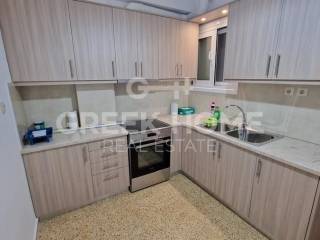 Kypseli - Apartment 53sqm bedroom, 4th, renovated, year built 1978, energy class D, living room, hall, kitchen, bathroom, heating type: central (natural gas), air condition, quiet, luminous, unobstructed view view, frontage, balconies, tents, elevator, loft storage, thermal shut-off frames, double glazed windows, door screen, wood & mosaic floors, separate kitchen, secure door, video doorbell, southern orientation, investment property (return 0.05%), close to metro/train (up to 100m), close to market (up to 100m).