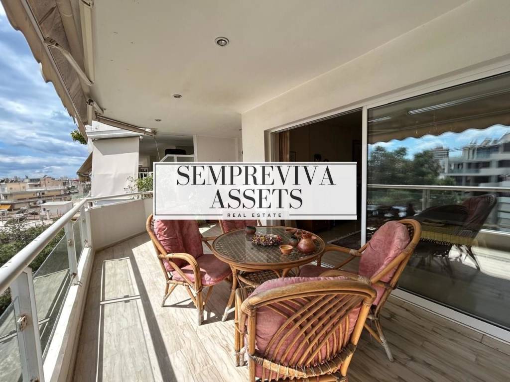 Apartment For sale, floor: 5th, in Palaio Faliro - Amfithea. The Apartment is 103 sq.m. and it is located on a plot of 4.500 sq.m.. It consists of: 2 bedrooms, 1 bathrooms, 1 kitchens, 1 living rooms and it also has 1 parkings (1 Underground). The property was built in 1995. Its heating is Autonomous with Natural gas, Air conditioning, Solar water system are also available, it has Alluminum frames with Double glazed windows, the energy certificate is: C and its floors are Tiles, Wooden, Marble. The property's status is: Very good condition, it is close to Tram, Transportation, Park, Sea, Seaside, School, Square, Public market, Super Market, Port, Local market, it has Park, Openness, Unobstructed view and it has Southeast orientation. The Apartment is On Corner, With Facade, Bright, Airy, Sunny, Airy, Modern and it also has the following unique features and advantages: Tents, Elevator, Storage, Garden, Security door, CCTV, Three phase current, Quiet neighborhood, Porch. Price: €365.000. Sempreviva Assets, contact phone: 6981525933, email: georgetsakyris@gmail.com, website: