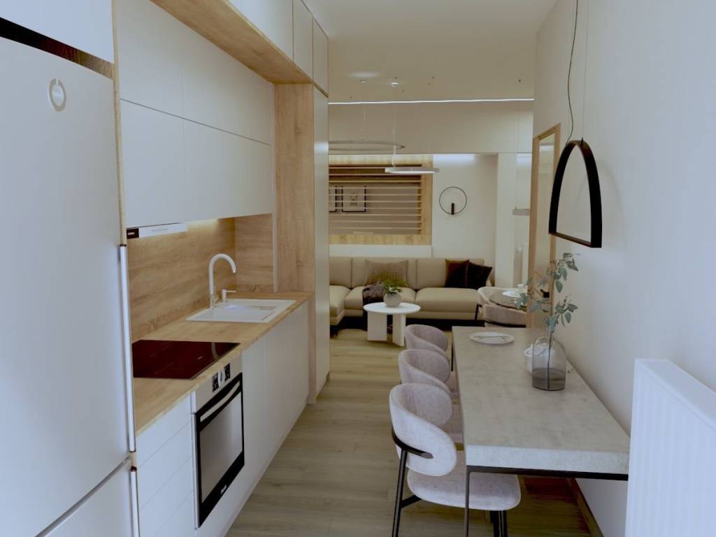 Ground-floor apartment of 101 sq.m. for sale in an excellent location in Neapoli, in the Strempenioti area—one of the quietest and most desirable neighborhoods. The property is currently undergoing a full, high-quality renovation, carried out over time with great attention to detail, focusing on both functionality and energy efficiency. It features 2 spacious bedrooms and the possibility of creating a second WC, fully meeting the needs of a modern home. Property features include: • Autonomous heating with natural gas • Thermal and sound insulation • PVC window frames (Kommerling) with energy-efficient glazing • Reinforced security entrance door • Video door entry system • Shared secure entrance for only 3 apartments Pricing: • €110,000 including kitchen furniture and sanitary ware (excluding electrical appliances and furniture) • €120,000 fully furnished and equipped with electrical appliances An ideal choice for both owner-occupation and investment, located in an area with easy access to shops, public transport, and essential amenities. Note: The images are photorealistic renderings, based on the final appearance of the property upon completion of the renovation.