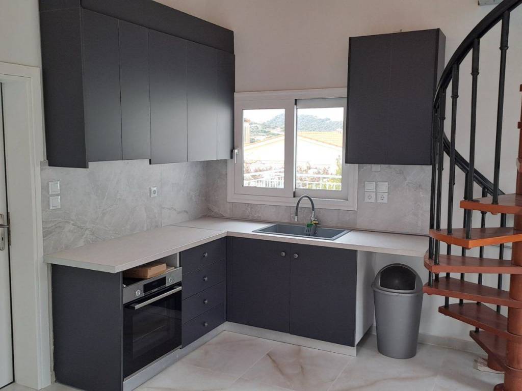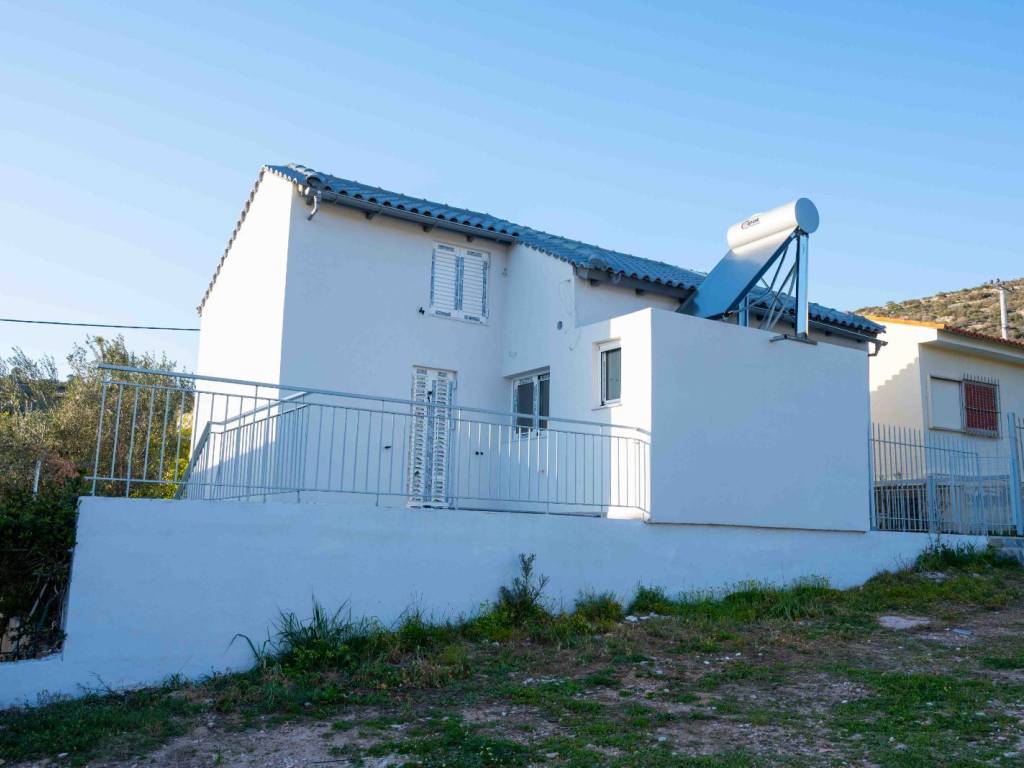 Detached house of 53.3 sq.m. with an additional 11 sq.m. loft. One bedroom on the ground floor and another one in the loft. Open-plan living room and kitchen. The entire house was fully renovated from the foundations to the roof in 2026, featuring thermal insulation (external façade insulation) and Europa window frames. In the living room there is a 24,000 BTU Mitsubishi air conditioner, and in the bedrooms there are 9,000 BTU air conditioning units. The plot is 250 sq.m. and includes one olive tree, two orange trees, one lemon tree, one pomegranate tree, and one loquat tree. The property also includes an additional 50 sq.m. plot (located opposite) with a concrete base, which can be used for parking up to two cars or for placing a mobile home. Quiet and very friendly neighborhood. From one of the verandas there is a sea view, with the sea located approximately 1,950 meters from the house. Also includes a 14 sq.m. basement auxiliary/storage space.
