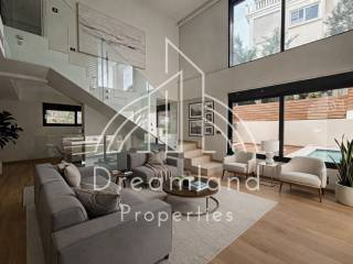 VOULA Center, Newly-Built Maisonette 171 sqm., Basement - Ground Floor - Mezzanine, 3 Master Bedrooms, 1 Bedrooms per Floor, Living Room - Dining Room - Kitchen on the Ground Floor with View to the Swimming Poll and Living Room - Kitchen on the Ground Floor with Natural Ventilation and Lighting. There Is a 2nd Living Room on the Mezzanine, 1 W.C. on the Ground Floor, 180 sqm. Private Garden and 32 sqm. Private Swimming Pool, Storage Room, 1 Underground Parking Spot, Aluminum Window Frames, Double Glazed Panes, Luxurious Construction, Nice Location, Quiet Area, Bright, Price 8.000 Euros (Listing Code: 4568).