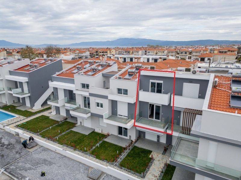For sale: a newly built first-floor maisonette of 52.06 sq.m., located in a new residential development in Paralia Ofriniou, Kavala – the Green Almond residential complex.