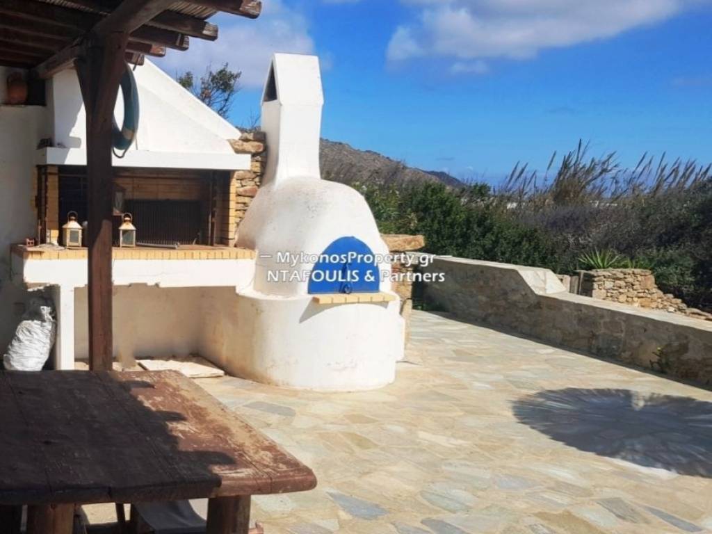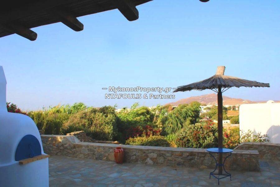ID: 1603194, Apartment, Ano Mera (Village), Ground floor, 84 sq.m, 2 Bedroom/s, 1 bath/s ==Ground-floor apartment with sea views, very close to Ano Mera village. It consists of a large living room with a fireplace, a kitchen, a dining area, 2 bedrooms, and 1 bathroom. Outside, there is a patio area with a pergola, an outdoor dining area, a BBQ, and the complex's large garden. The apartment has auxiliary spaces of approximately 31 sq.m. A swimming pool can be constructed on the plot. The construction of the pool is not included in the sale price. It is suitable for a private residence or tourism holding.