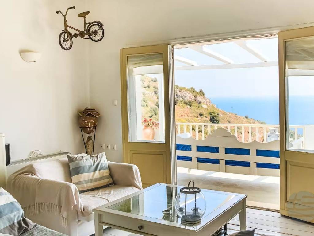 Marvelous house above the bay and area of Vromolithos Magnificent view that can never be taken away Main house on the top, with an open living room – kitchen plan, 3 bedrooms and two bathrooms (110 sqm) Guesthouse below , 1 bedroom (60 sqm) Swimming pool Quiet area, somewhat remote* Forgive the low resolution of the pictures, they will be refreshed soon.