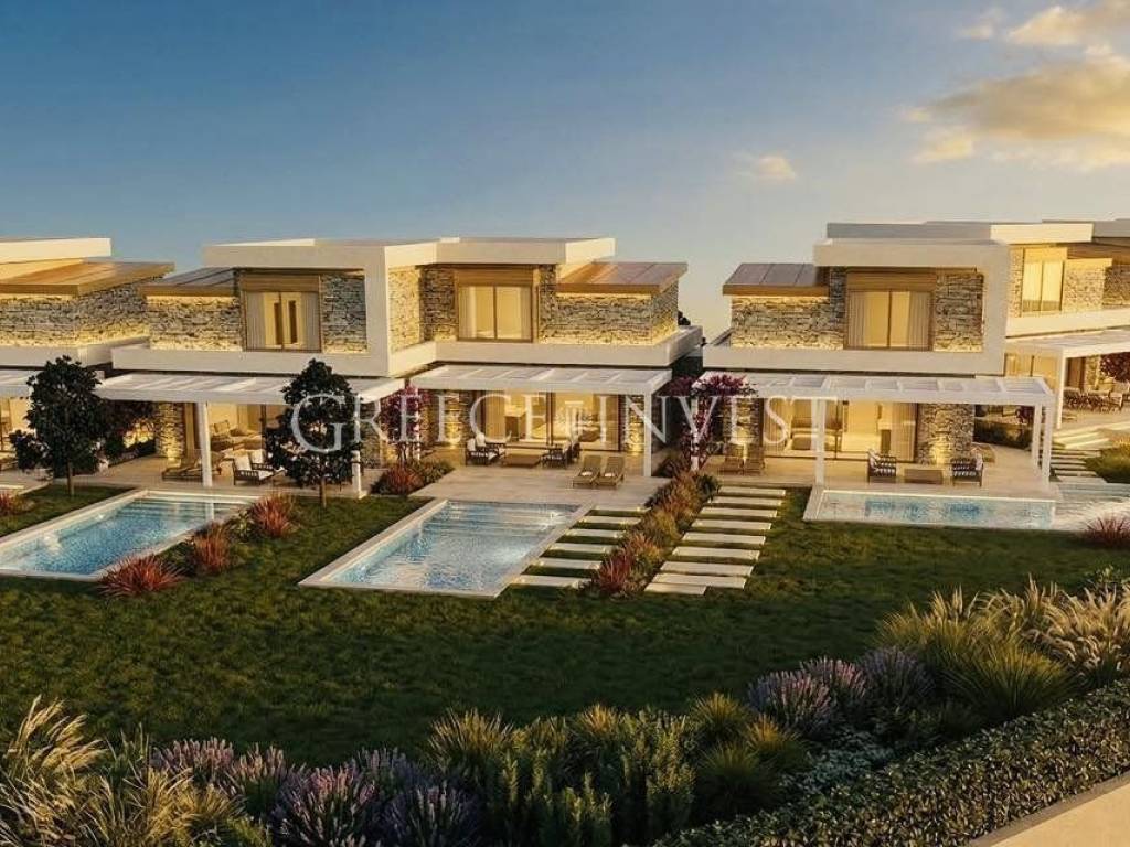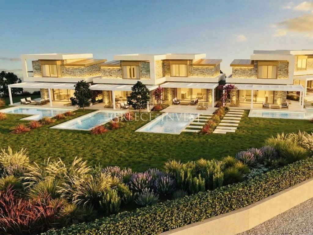 New townhouse complex with sea view A modern townhouse complex for sale, ideally located within walking distance of a sandy beach. Each townhouse is arranged over three levels and includes a private plot of 350–500 sq.m. A swimming pool is optional and not included in the price. Layout: Ground floor: living room with kitchen, bathroom First floor: 2 bedrooms, bathroom Basement level: 2 bedrooms, bathroom An excellent choice for both holiday use and permanent residence.For any further information, please contact us: Elena Dolmenidi +30 698 044 6749 (Viber, WhatsApp, Telegram) Greece Invest www.greece-invest.com We focus only on high-quality cottages, villas and apartments. Depending on your requirements, our experts will help you find the right property. We fully manage the purchase process, assist in obtaining residence permit for property owners and provide rental property management services.