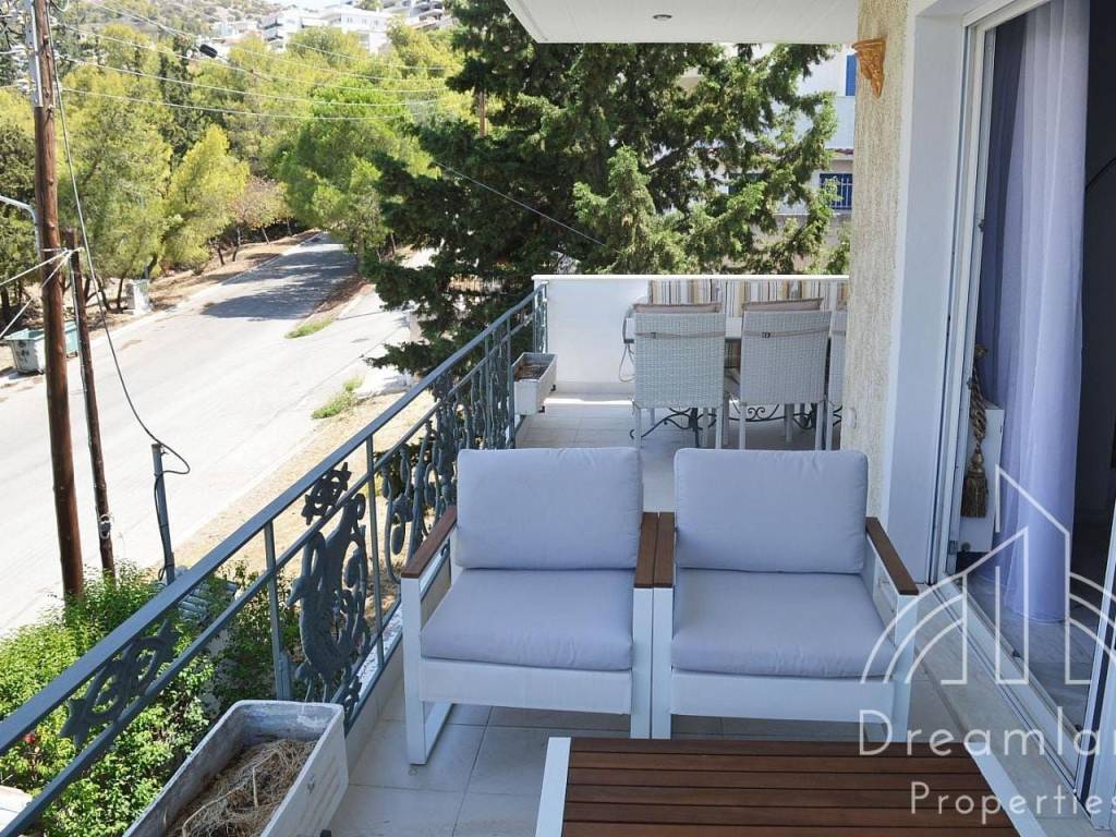 VOULA Panorama, Penthouse Maisonette 140 sq.m., 2nd - 3rd Floor, 3 Bedrooms (1 Master), 3 Bathrooms, '92 Construction Year, Partially Renovated, Autonomous Heating with Petrol, Air Conditioning, Fireplace, Security Door, Secured Parking Space, Dish Washer, Spacious Living Room, Open Plan Kitchen, Comfortable Veranda, Forest View, Aluminum Frames, Double Glazed Windows, Wooden Floors in Bedrooms, Security Alarm Pre Installation, No Elevator, Garden, Excellent Condition, Very Good Location, Quiet Area, Low Communal Fees, Very Bright, Pets are Not Allowed, Price 1.680 Euros (Listing code: 4026).