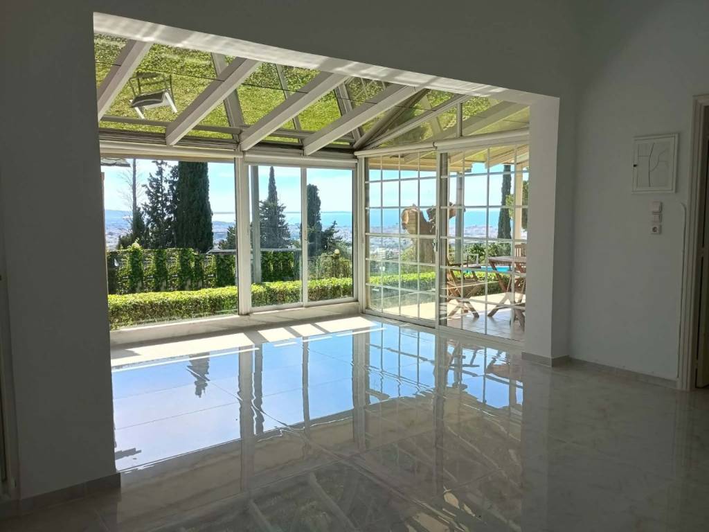 Independent 2-level detached house 142 sq m 3 bedrooms one master 2 bathrooms The detached house is located on an amphitheatrical plot of 1000 sq m in a completely quiet and green area with Excellent Unobstructed Views in every direction Mountain City Sea. The property has a Photovoltaic Panel Power Station that reduces consumption on the bill by 85-90%. It also has a DAIKIN ALTHERMA heat pump for heating that reduces consumption to 1/4 compared to oil. At the same time it also has an oil burner. It has a 180-liter Dual Energy Solar Water Heater with new technology panels for greater efficiency even on cloudy days. Aluminum Security Frames with Thermal Break and Double Endothermic Glazing Screens everywhere It is fenced to provide Security and Privacy. It also has a Heated Private Pool, Covered Parking with Private Electric Garage Door, Dual Energy Alarm with Installed Security Cameras. 10sqm Storage, Pressure Washer and 2.5 Ton Water Tanks. The Detached House is located 5 minutes from the market (Super Market, Pharmacies, Hospital) and 10 minutes from the city center.