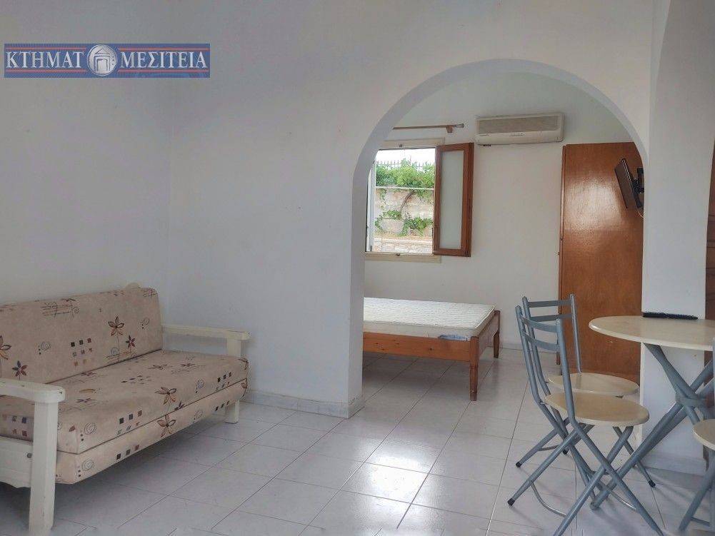 Syros, Ermoupoli: Available for rent until end of September 2026 studio apartment of 35 sq.m. on the ground floor. It consists of 1 single room with a bedroom, 1 kitchen-living room and 1 bathroom. It is furnished with basic furniture and electrical appliances, as well as 1 air conditioner. In addition, there is an outside laundry area and a yard that offers a nice view. The property also has outdoor parking spaces. It is located close to Syros Hospital. Price 280€/month (Wifi included) | Property Code: #2881