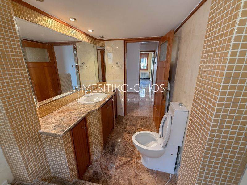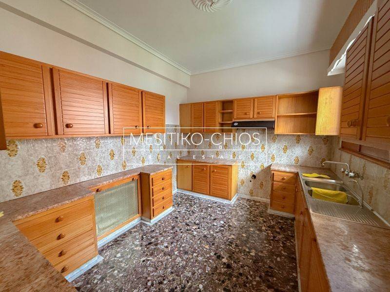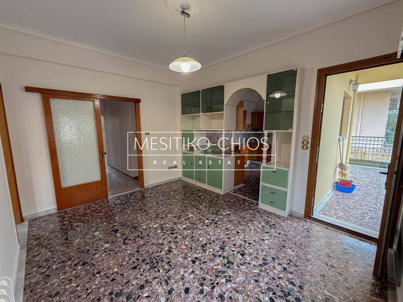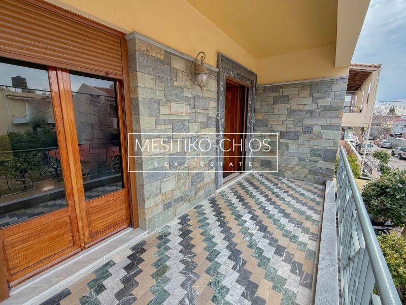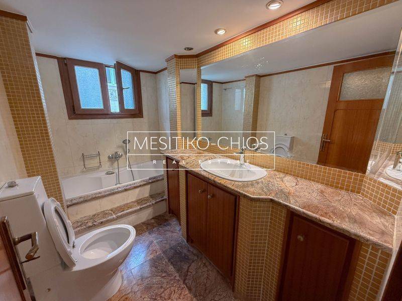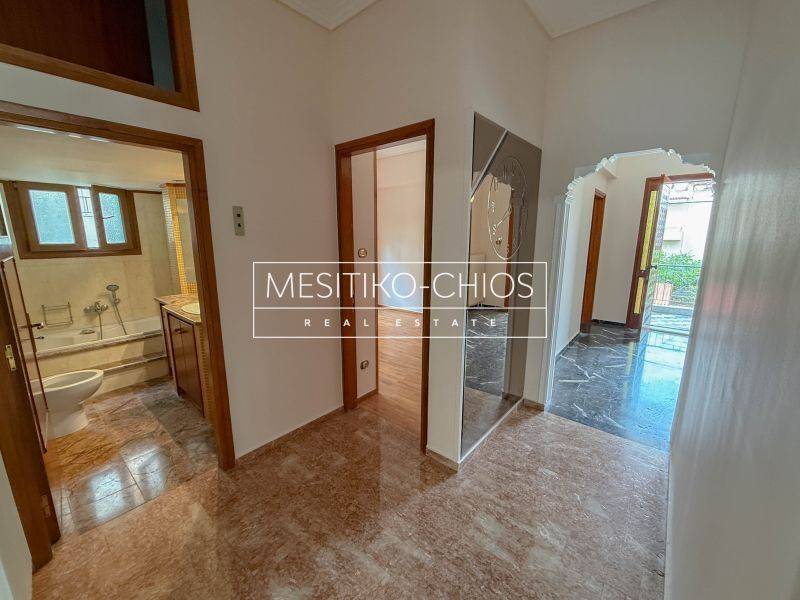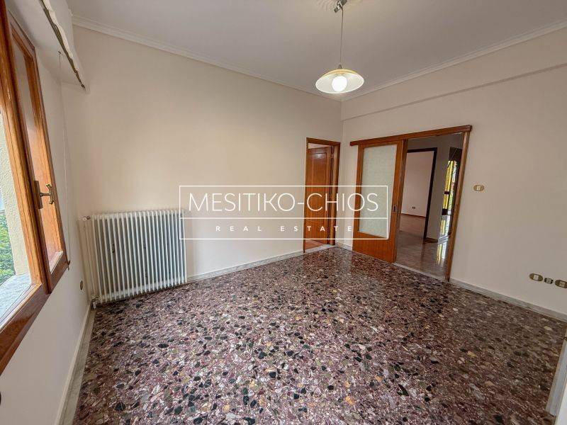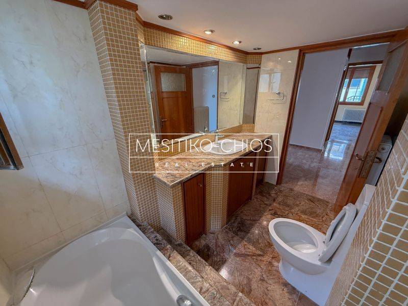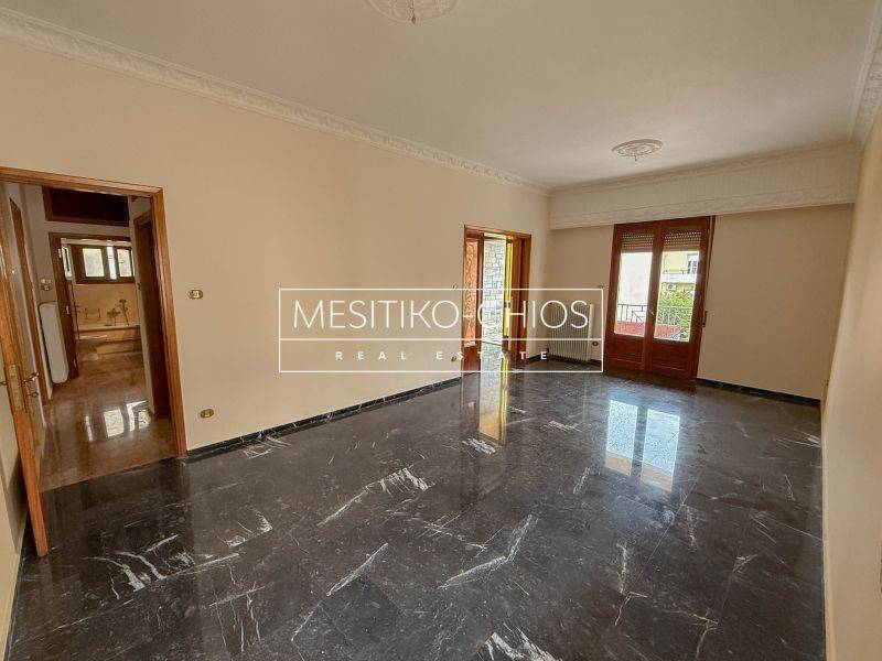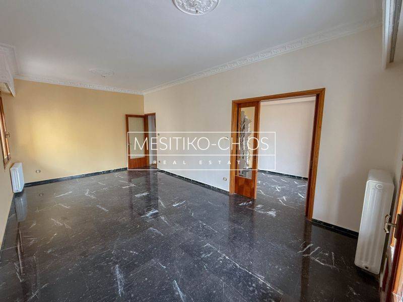 In the heart of Chios town, in the Kammenos Pyrgos area, a 140 sq m. Apartment is available for rent that combines classic lines with functionality. The property is located on the first floor of a duplex and stands out for the comfort of its spaces and the open view offered by its location.
