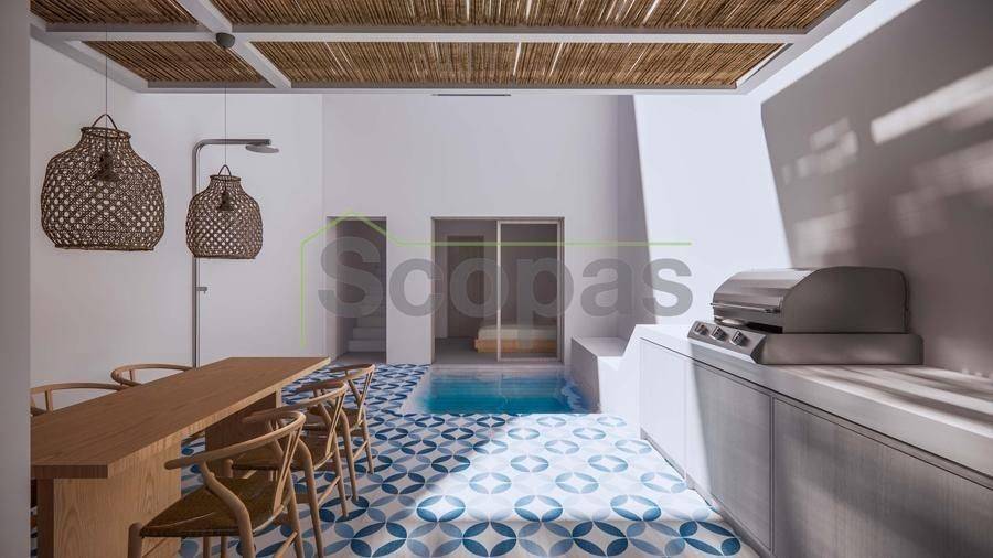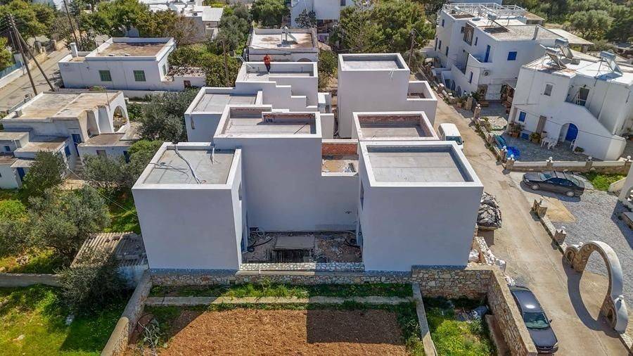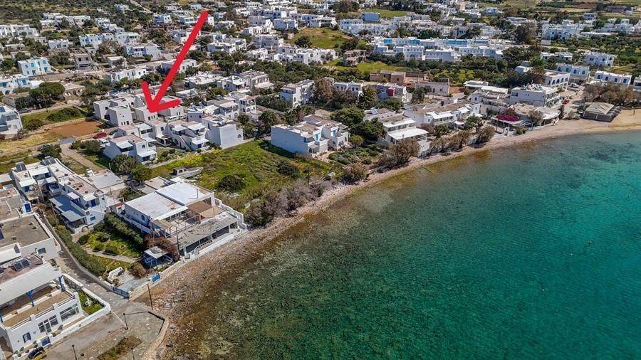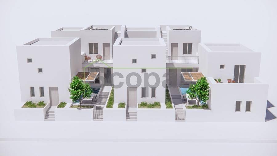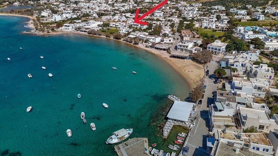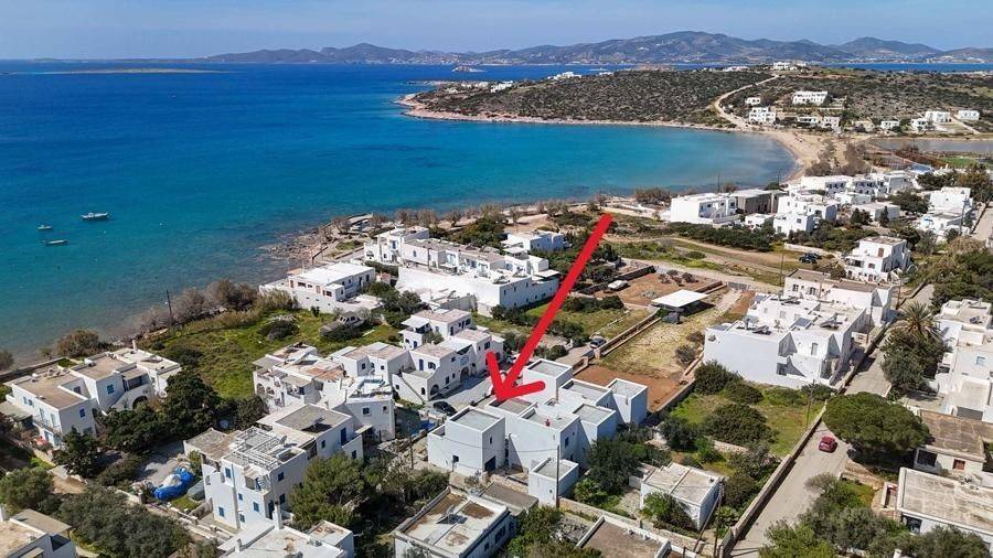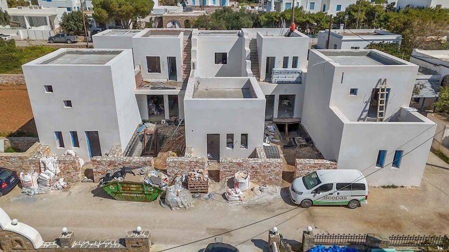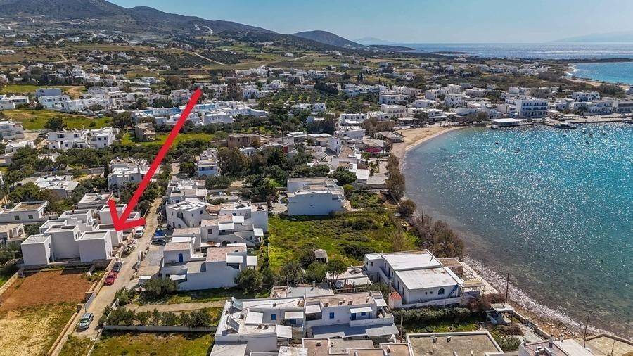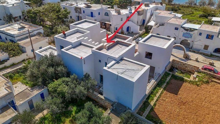 House for sale in southern Paros, in Alyki. Corner residence of 82m2, in a complex under construction, on a plot of 100m2. It has 2 bedrooms, 2 bathrooms, a WC, a kitchen, a living room, and a patio with a splash pool. It also has heating, air conditioning, double-glazed windows with flyscreens, a fireplace, verandahs, a security door, and a BBQ. Just a few meters from the sea and the picturesque harbor of Alyki, is an ideal choice for a holiday home or rental investment. Western orientation with street views. All networks are connected. Access by paved road. 13 km from the port of Parikia. 4 km from the airport.