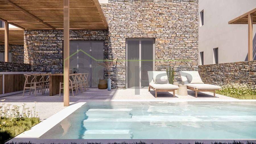 House of 119m2 in a complex for sale by SCOPAS REAL ESTATE & CONSTRUCTION. Two-storey house of 119m2, in a complex of 5 houses, in the south of Paros, in the area of Aliki. The property consists of 3 bedrooms, 3 bathrooms, a living room and a kitchen. It also has a private pool/jacuzzi and a parking space. South orientation with a unique view of Alykis Bay and its port. Suitable for permanent or holiday home in the idyllic Cycladic landscape. It is also an ideal choice for investment. Accessible by paved road. 400m from Aliki beach, 11.6 km from the port, 6.3 km from the airport. The information and characteristics of the properties have been entered based on the information and data provided by the principal. -The point on the map does not correspond to the real address of the property. -When indicating the property, a identity card or VAT number is necessary, according to Law N.4072/2012 - Official Gazette 86/A/11-4-2012.