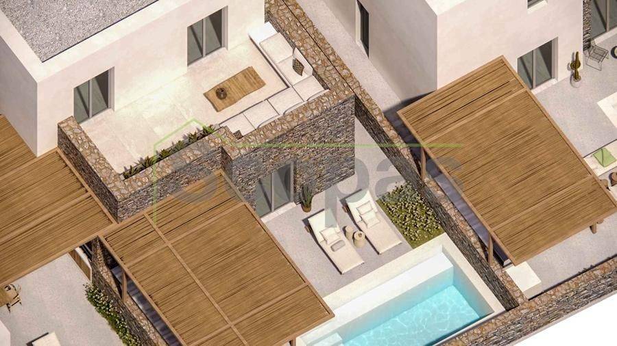 House of 123m2 in a complex for sale by SCOPAS REAL ESTATE & CONSTRUCTION. Two-storey house of 123m2, in a complex of 5 houses, in the south of Paros, in the area of Aliki. The property consists of 3 bedrooms, 3 bathrooms, a living room and a kitchen. It also has a private pool/jacuzzi and a parking space. South orientation with a unique view of Alykis Bay and its port. Suitable for permanent or holiday home in the idyllic Cycladic landscape. It is also an ideal choice for investment. Accessible by paved road. 400m from Aliki beach, 11.6 km from the port, 6.3 km from the airport. The information and characteristics of the properties have been entered based on the information and data provided by the principal. -The point on the map does not correspond to the real address of the property. -When indicating the property, a identity card or VAT number is necessary, according to Law N.4072/2012 - Official Gazette 86/A/11-4-2012.