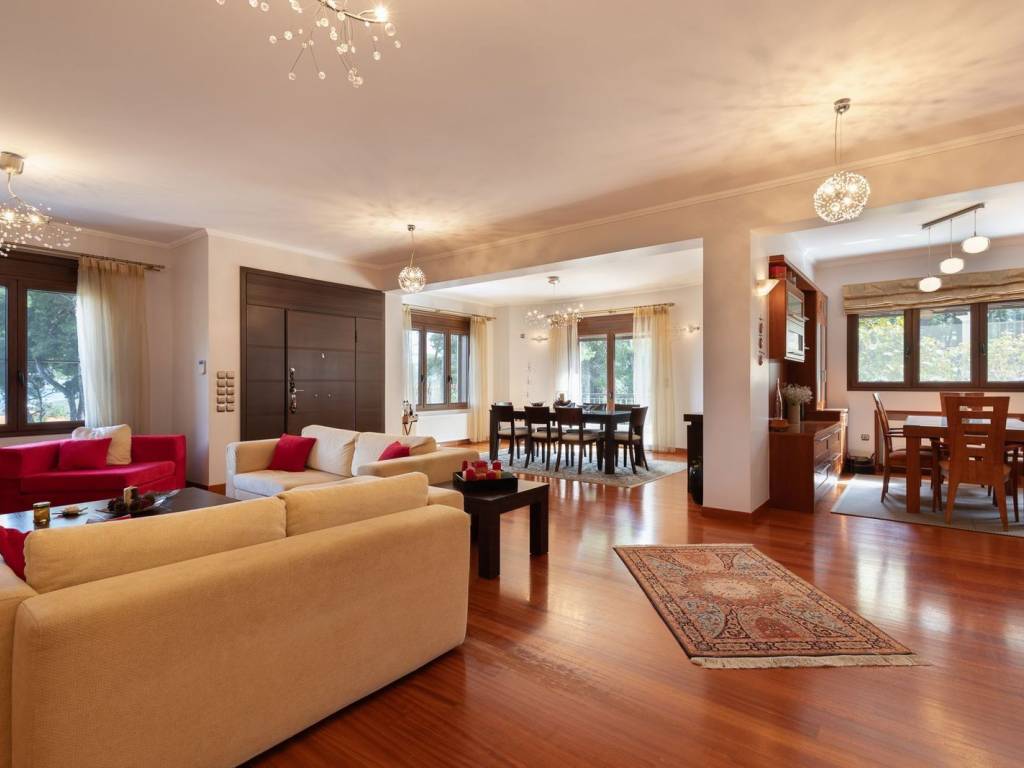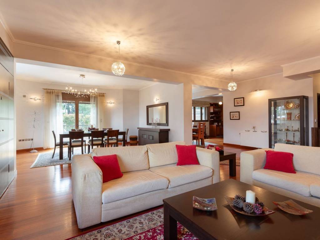The Grove is a luxurious residence located in the prestigious and peaceful area of Agios Stefanos, in the northern suburbs of Athens. Surrounded by lush greenery and offering a high quality of life, the property combines absolute privacy with direct access to the National Highway and the city center, making it an ideal choice for refined living. The residence spans 460 sq.m. of main living areas, thoughtfully arranged across multiple levels. It features four spacious bedrooms, including a master suite, three elegant bathrooms, and an additional WC. The property also offers two fully functional kitchens and two impressive, light-filled living rooms that create an atmosphere of comfort, elegance, and hospitality. Built in 2003, the home reflects high construction standards throughout. Premium flooring, energy-efficient aluminum window frames with double glazing, and autonomous oil heating ensure comfort and efficiency year-round. An internal staircase and private elevator further enhance everyday functionality and ease of movement within the residence. Outdoors, a beautifully maintained garden provides a private oasis of tranquility, ideal for relaxation and leisure. The property is further complemented by two underground parking spaces, a storage room, and a comprehensive security system including an armored door, video intercom, alarm system, and security cameras, ensuring complete peace of mind. Agios Stefanos is a quiet and green residential area in the northern suburbs of Athens, offering privacy, quality of life, and a relaxed suburban environment. It combines a peaceful setting with direct access to the National Highway, ensuring easy connection to central Athens and key destinations. Von Poll Greece offers a full spectrum of services to support clients throughout the property purchase process in Greece. Beyond our core real estate expertise, we collaborate with a trusted network of professionals—including legal advisors, notaries, tax consultants, and architects—to ensure every stage of the transaction is handled smoothly and securely. We guide buyers step-by-step through the entire process of acquiring property in Greece, from the initial search and due diligence to contract signing, taxation matters, and final handover. Our goal is to provide a transparent, efficient, and fully supported experience for international and local clients alike.