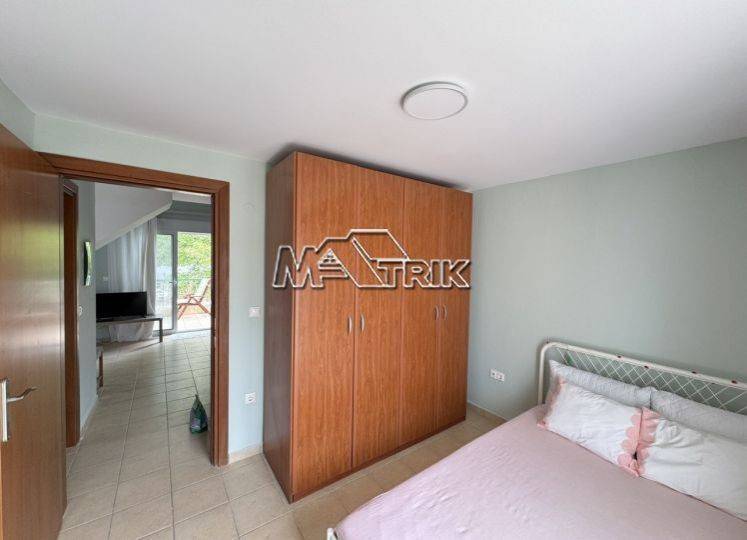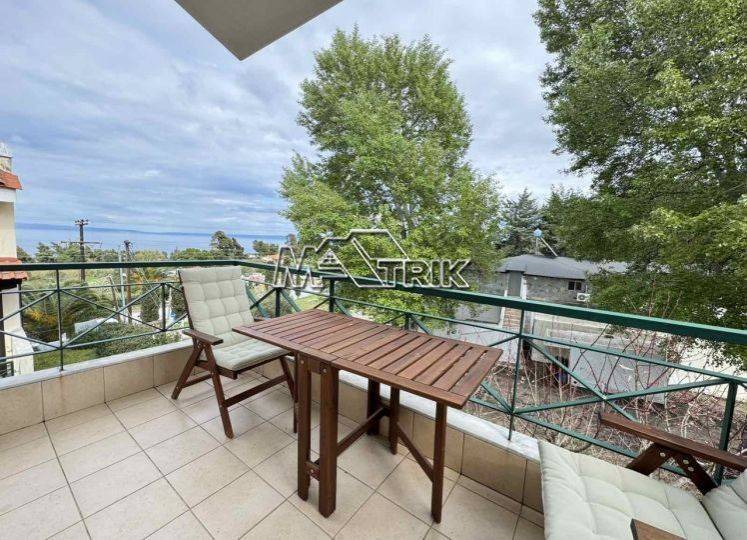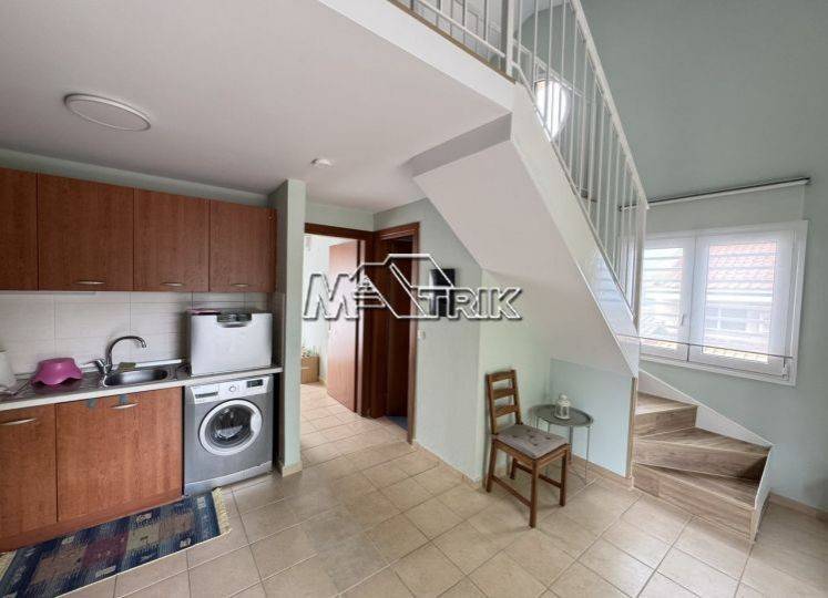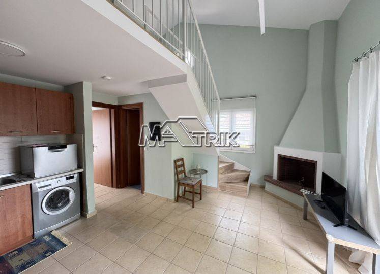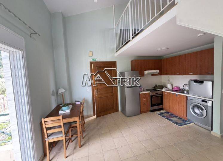 Chalkidiki, Kryopigi, recently renovated apartment (loft) 66 sqm, second floor with unobstructed sea view. It consists of two bedrooms, a kitchen-living room and one bathroom. It has aluminum sliding window frames with double glazings and nets, tiled floor, door with security lock, two a/c, fireplace, storage room on the first floor, as it is fully furnished and equipped with all electrical appliances. It is located in a very central point and its distance from the sea is 1km. It is available for the entire summer season from May-October.