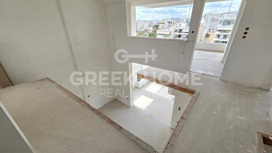 Kallithea (Attica - Southern Suburbs), Tzitzifies - Full floor Maisonette 145sqm unfurnished, bedrooms 2, master bedroom, levels 2, 6th (82sqm) - 7th (63sqm), penthouse, under construction, constructionstage frames, year built 2025, energy class A+, living room, hall, kitchen, 3 bathrooms, heating type: individual unit (fan coil), air condition, parking covered, quiet, dual aspect apartment, luminous, unobstructed view, frontage, painted, electric roller shutters, storage space, external thermal insulation, balconies, large balconies, elevator, built in appliances, thermal shut-off frames, double glazed windows, door screen, ceramic tiles floors, separate kitchen, three phase electricity, secure door, video doorbell, luxurious, internal staircase, satellite, internet, pets allowed, special offer, close to park (up to 100m).