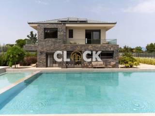 Villa for sale in Pefkochori, Kassandra of Chalkidiki for 1.600.000€ (Listing No 14002). Another property brought to you by Clock Real Estate. Located in the administrative area of Kassandra, region of Chalkidiki, this luxurious property is now available for sale. This villa is sized about 220sqm with its land size being around 2000sqm. Constructed in year 2024, the building was finished on the highest standards of the Market which can be seen through the available photos accompanying the listing.