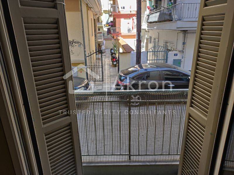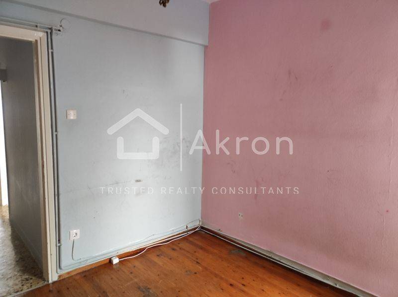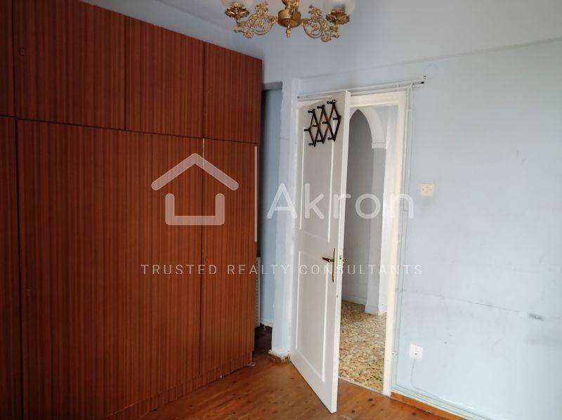 Top floor apartment, 78 sq. m. gross. Includes 2 bedrooms with a balcony, a living room with a balcony, a separate kitchen, and a bathroom. Natural gas, wooden floors in the rooms, and mosaic in the hall, new window frames, bright. Located in the area of Theageneion Hospital and is currently rented and will be available for visitation at the end of April. Needs partial renovation.