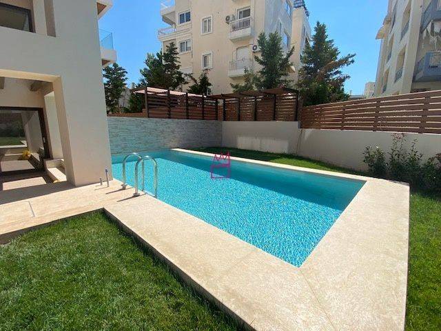 VOULA, Duplex / Triplex Apartment, 150 sq.m, on a plot of 162 sq.m, year built 2021, 3 rooms, Semibasement, Ground Floor, 1st, Various Characteristics: Balcony, Bath (3), Escalator, Fire Place, Garden, Playroom, Refurbished, Store Room, Swimming Pool, Toilet, Master Bedrooms: 1 Master Bedroom, Flooring: Wooden floor, Heating: Air Conditioning, Autonomous Heating, Aluminium panels, Bright, Corner Block, Double-glazing, Facade, False ceiling, From Side to Side, Luxury, Maid Room, Minimal, Newly built, Satellite TV, Security Alarm, Security Door, Tents, : : : : Parking area: Garage, Energy class: B+, property ID: 44746, www.nova-terra.gr